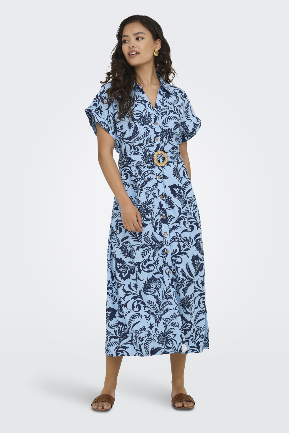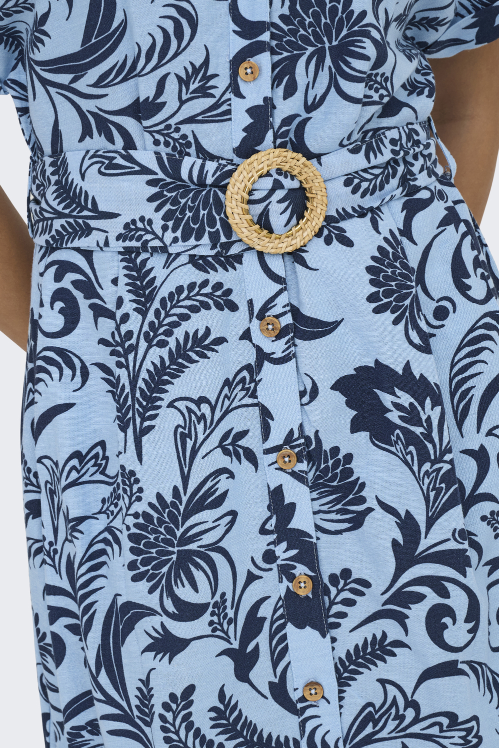 Deze casual bloemenjurk van Only combineert comfort en stijl met zijn regular fit pasvorm. Gemaakt van een ademende mix van viscose, katoen en linnen, voelt deze jurk heerlijk licht aan. De cerulean blauwe print met sierlijke bloemendetails geeft een frisse uitstraling die perfect is voor dagelijks gebruik. De korte mouwen en de praktische steekzakken dragen bij aan het comfortabele ontwerp, terwijl de knoopsluiting en puntkraag een klassieke touch toevoegen. De jurk heeft een verfijnde ceintuur met een opvallende ronde gesp, waardoor je taille mooi geaccentueerd wordt. De 7/8 lengte maakt hem veelzijdig voor verschillende gelegenheden, van een ontspannen dagje in het park tot een informeel diner met vrienden. Draag hem met sandalen voor een relaxte look, of kleed hem aan met hakken voor een iets formelere setting. Deze jurk is een geweldige aanwinst voor je alledaagse garderobe. Meer informatie: Totale lengte van deze blousejurk is 115 cm bij maat S