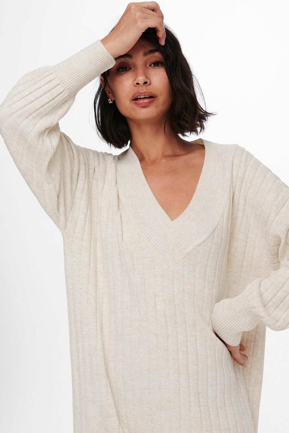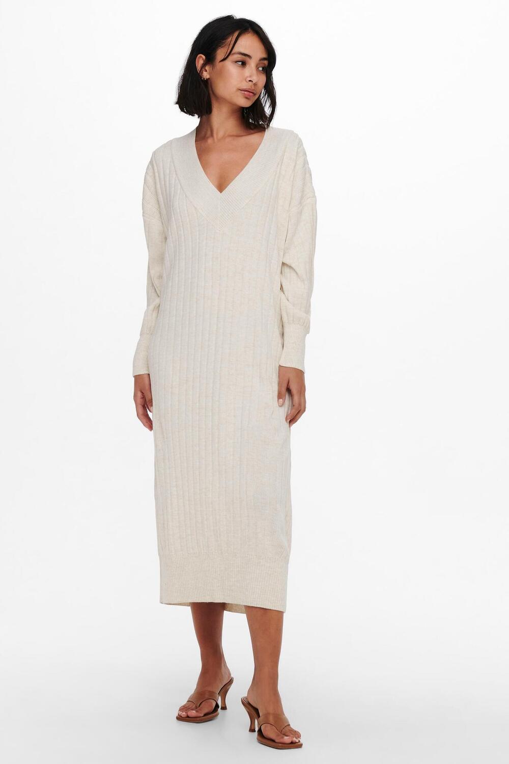 Deze gemêleerde knitwear jurk van Only is een must-have voor je capsule garderobe. Met zijn Pumice Stone/W Melange kleur is de jurk veelzijdig en stijlvol. Gemaakt van 100% acryl, biedt het een comfortabele pasvorm die makkelijk in je dagelijkse outfit past. De regular fit en de lange mouwen zorgen ervoor dat je er zowel casual als elegant uitziet. Dankzij de zachte V-hals krijgt de jurk een verfijnde uitstraling die je kunt dragen tijdens een informele lunch of een gezellige avond met vrienden.