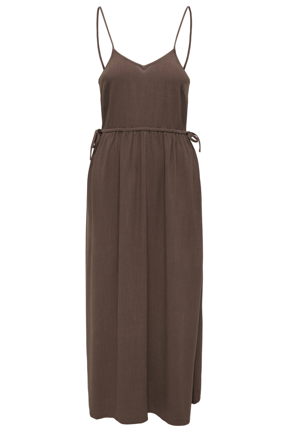 Deze elegante lange jurk van Only is een perfecte toevoeging aan je zomergarderobe. Gemaakt van een comfortabele mix van 80% viscose en 20% linnen, zorgt deze jurk voor een luchtige en lichte draagervaring. De v-hals en subtiele spaghettibandjes geven het geheel een verfijnde uitstraling, terwijl de bruine kleur, “Shopping Bag”, een warme en natuurlijke uitstraling biedt. De regular fit past soepel om je lichaam en zorgt voor een ontspannen look. Of je nu een casual dagje uit plant of ontspannen wilt dineren, deze Only jurk is een veelzijdige keuze. Draag hem met sandalen voor een dag op het strand of kleed hem aan met accessoires voor een avondje uit. Door de lange lengte krijg je een stijlvolle en vrouwelijke uitstraling, wat de jurk geschikt maakt voor verschillende gelegenheden. Geniet van de moeiteloze mix van stijl en comfort die deze Only jurk biedt. Meer informatie: De totale lengte is 130 cm bij maat S.