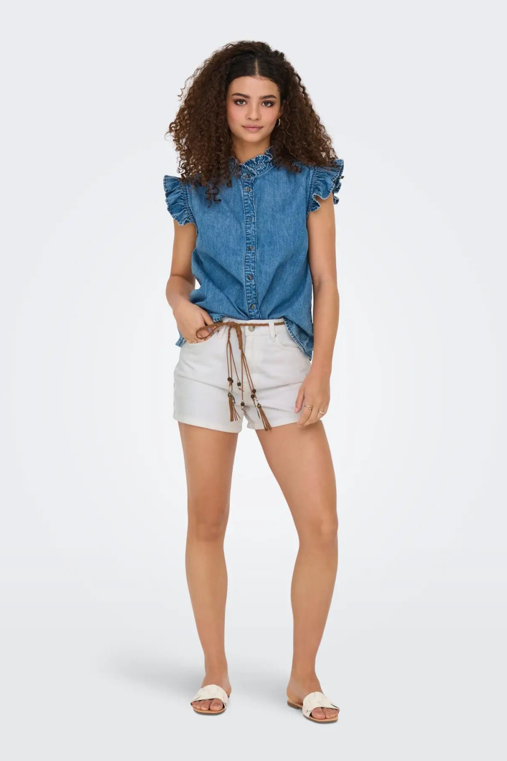 Deze witte denim korte broek van Only is een praktische aanvulling op je zomergarderobe. Met een high waist ontwerp biedt de broek een comfortabele en flatterende pasvorm. Het 5-pocket design zorgt voor een tijdloze uitstraling, terwijl de knoop- en ritssluiting eenvoudig in gebruik is. Het opvallende, gevlochten riempje met kralen en metalen details geeft de broek een speelse, bohemien touch. Gemaakt van 100% katoen, is deze korte broek ideaal voor warme zomerdagen. De regular fit en normale lengte maken het een veelzijdig kledingstuk dat je makkelijk kunt combineren voor verschillende gelegenheden. Draag deze broek naar het strand met een luchtige top of kies een blouse om jouw outfit geschikt te maken voor een casual lunch. Met de denim stijl en rinsewash afwerking blijft deze Only korte broek een klassieke keuze voor ongedwongen momenten.