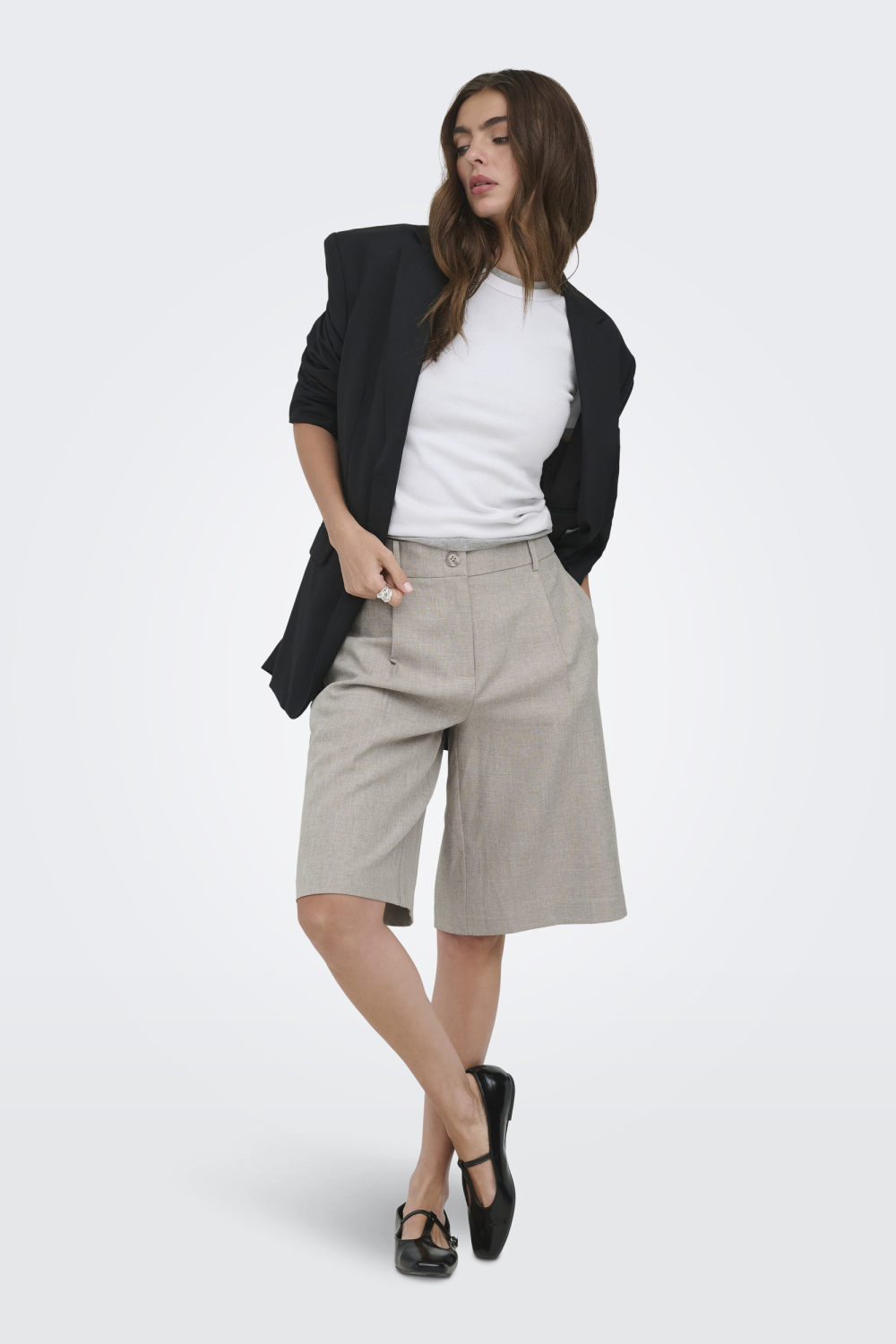 Deze stijlvolle gemêleerde korte broek van Only is een must-have voor je zomergarderobe. Met een high-waist design en vervaardigd uit 97% gerecycled polyester en 3% elastaan, biedt deze broek niet alleen comfort, maar ook een duurzame keuze. De regular fit zorgt ervoor dat hij veelzijdig inzetbaar is, of je nu naar het strand gaat of een zomerse stadwandeling maakt. De subtiele gemêleerde stof en steekzakken geven het een moderne uitstraling die gemakkelijk te combineren is met zowel casual als meer formele outfits. De korte broek is voorzien van een knoop- en ritssluiting en komt tot net boven de knie, wat zorgt voor een luchtige draagervaring op warme zomerdagen. Combineer het met een lichte blouse en sandalen voor een casual look, of voeg een blazer toe voor een meer geklede stijl. Of je nu op het terras zit of een dag op kantoor doorbrengt, met deze Only korte broek kies je voor een stijlvolle en comfortabele outfit waarmee je altijd goed voor de dag komt.