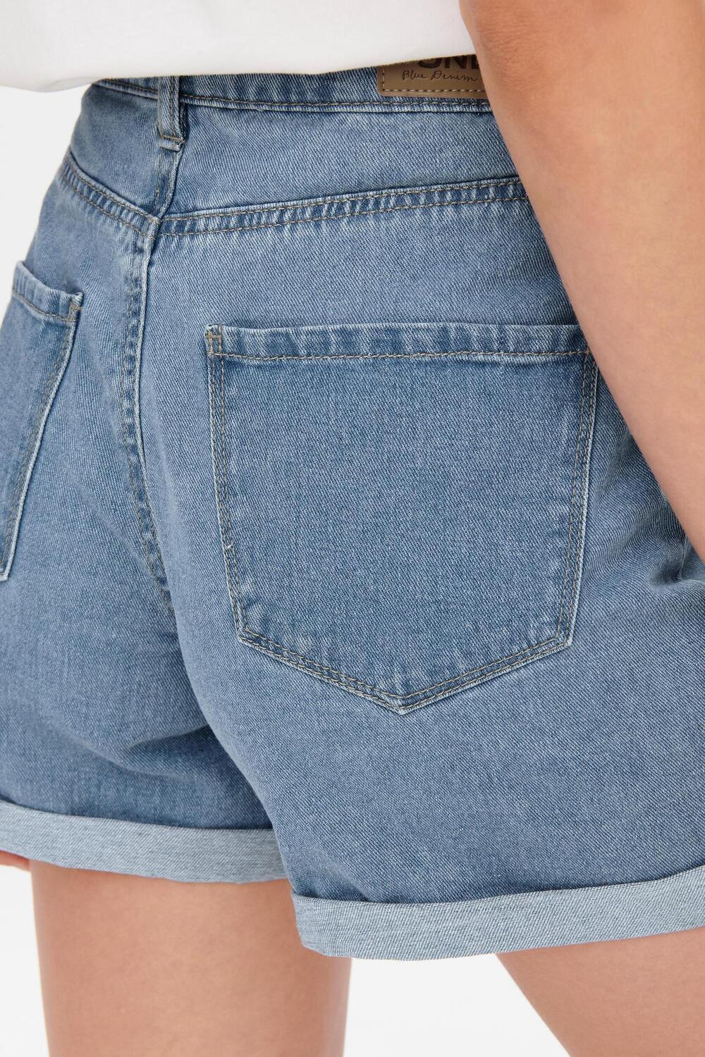 Deze Only mom-fit korte broek in light blue denim biedt de perfecte combinatie van stijl en comfort. Gemaakt van 100% katoen, voelt de stof heerlijk zacht aan en blijft de hele dag door comfortabel, ook tijdens warm zomerweer. Deze high-waist mom short heeft een bleached wash voor een casual uitstraling en is voorzien van een knoop- en ritssluiting. De omgeslagen pijpen geven de broek een speelse, nonchalante touch die perfect is voor een dagje uit. Met vijf praktische zakken beschik je over genoeg ruimte voor je essentials, zodat je handsfree kunt genieten van elke activiteit. Deze denim short combineert moeiteloos met een losse top of een strak T-shirt voor een relaxte look. Draag hem op het strand, in de stad of tijdens een zomerse barbecue. De veelzijdigheid van deze korte broek maakt hem een waardevolle toevoeging aan je zomergarderobe.