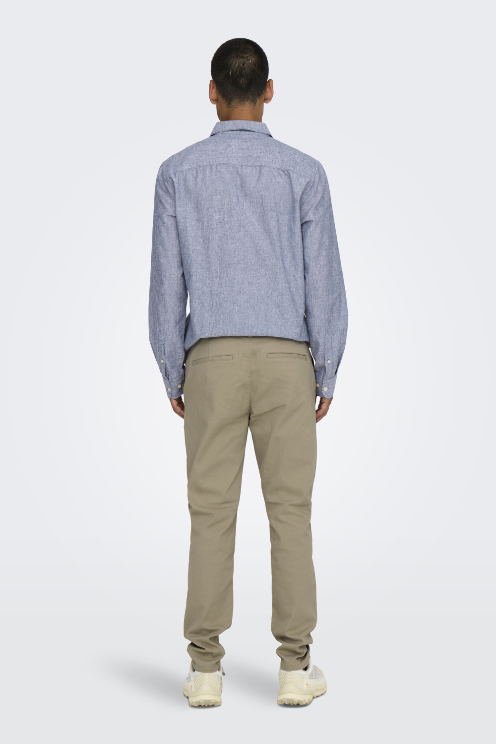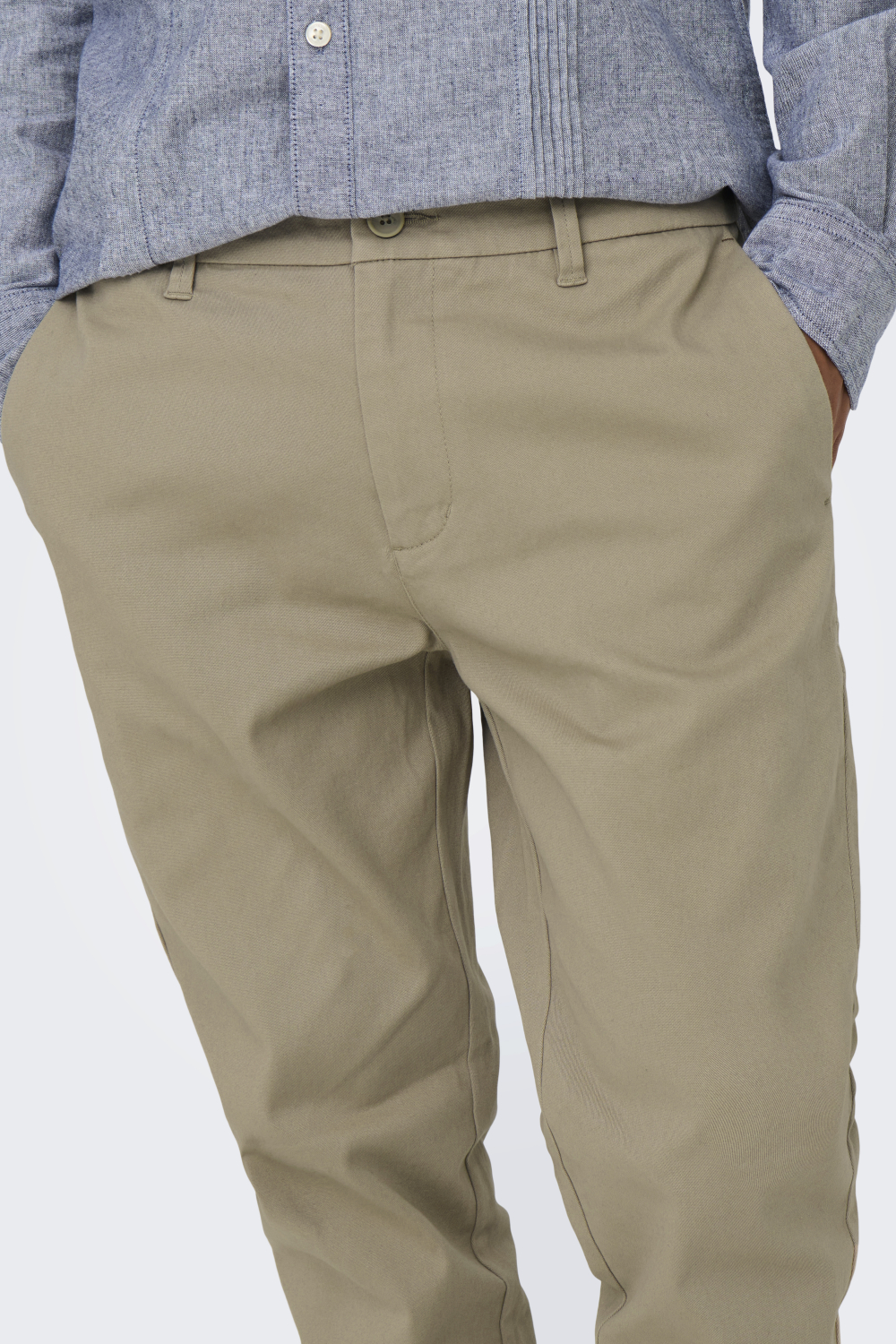 Deze casual broek van Only & Sons is een elegante keuze voor de zomergarderobe. De slim fit pasvorm en de reguliere taille bieden een moderne uitstraling zonder in te boeten op comfort. Gemaakt van 98% katoen en 2% elastan, zorgt deze combinatie voor een zachte touch en voldoende bewegingsvrijheid. Met de subtiele zandkleur en klassieke steekzakken is deze broek een stijlvolle optie voor diverse gelegenheden. Dankzij de knoop- en ritssluiting sluit de broek mooi aan, perfect om te combineren met een overhemd voor een nette look of een T-shirt voor een casual outfit. Of je nu een dag op kantoor hebt of een ontspannen weekend uitje plant, deze broek past bij elke setting. De normale lengte en het fijne materiaal maken het een comfortabel kledingstuk voor zomerse dagen.