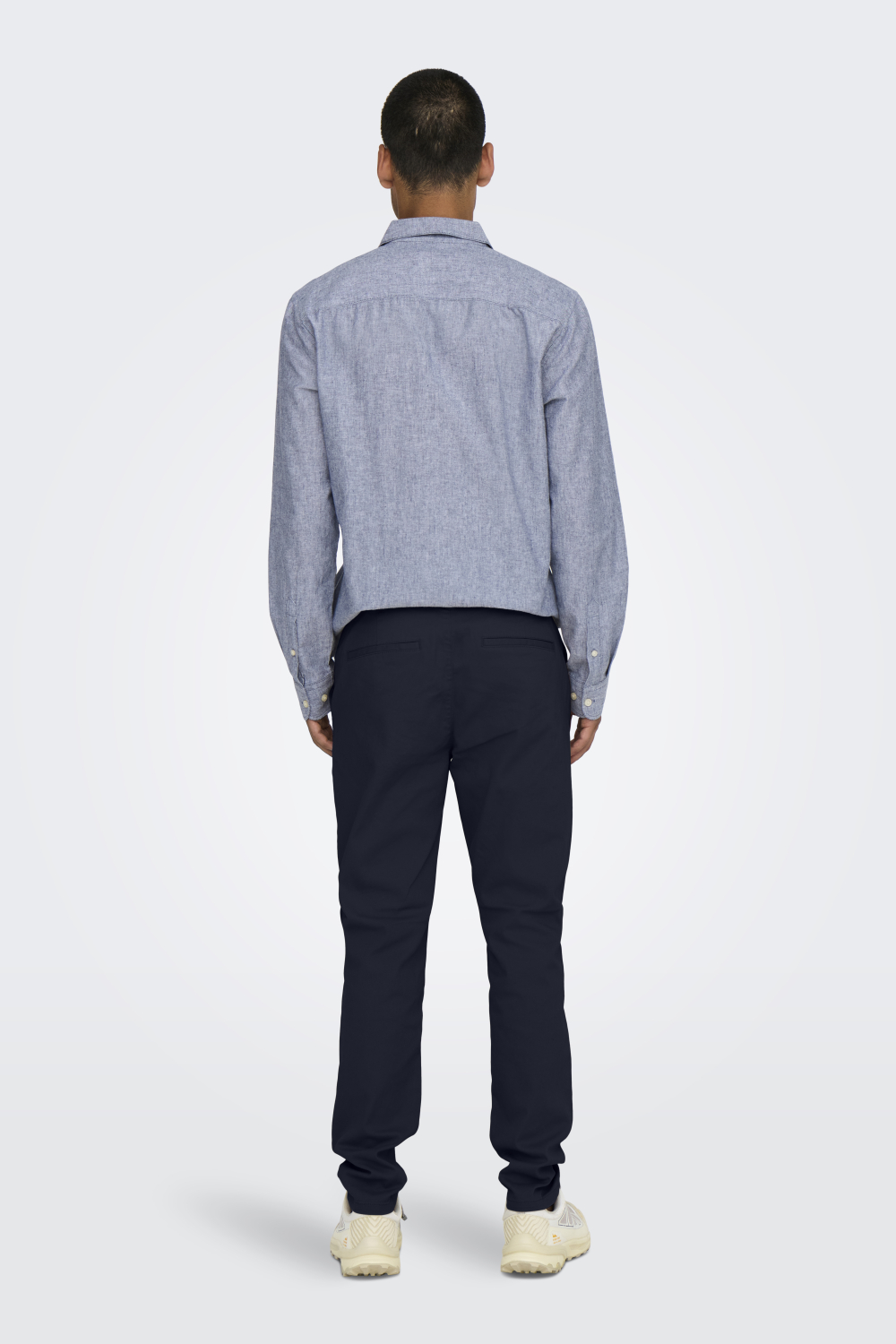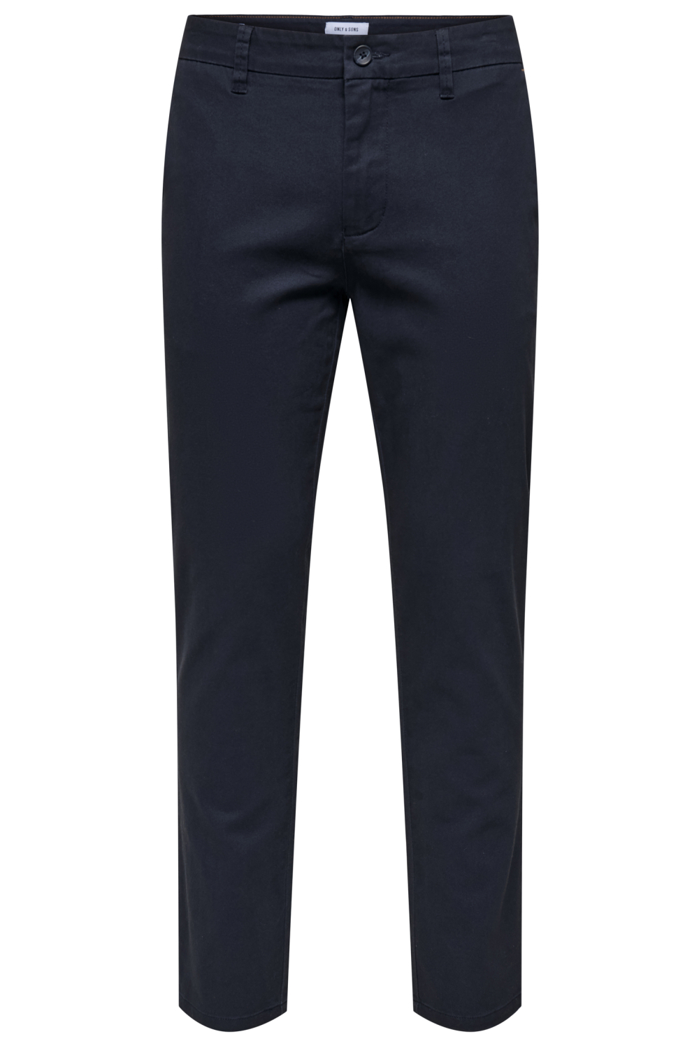 Deze stijlvolle donkerblauwe broek van Only & Sons is een veelzijdige toevoeging aan jouw zomergarderobe. Met een slim fit pasvorm biedt deze broek een moderne en strakke look, perfect voor zowel informele als iets nettere gelegenheden. De samenstelling van 98% katoen en 2% elastan zorgt ervoor dat je comfortabel de dag doorkomt, met genoeg bewegingsvrijheid. De broek is voorzien van handige steekzakken, ideaal voor het bewaren van je essentials. Dankzij de regular waist en de normale lengte combineer je deze broek eenvoudig met verschillende outfits. Of je nu kiest voor een casual look met sneakers en een T-shirt, of een meer geklede stijl met een overhemd en nette schoenen, deze broek past er moeiteloos bij. De knoop- en ritssluiting aan de voorzijde geeft een klassieke uitstraling, terwijl het donkerblauwe kleurenschema subtiel en tijdloos is. Voor een zomerevent of een relaxte avond in de stad, met deze broek ben je altijd goed gekleed.
