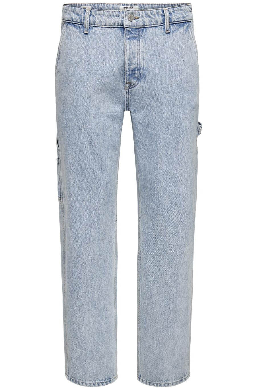 Deze jeans van Only & Sons in een stijlvolle light blue denim kleur is een uitstekende keuze voor elke dag. Met een straight fit en regular waist biedt deze jeans zowel comfort als een moderne uitstraling. Gemaakt van 100% katoen, voelen ze zacht aan en passen ze zich goed aan je bewegingen aan. De bleek gewassen look geeft een frisse touch, terwijl de knoop- en ritssluiting zorgen voor gemak. De jeans is voorzien van praktische steekzakken en zijzakken, ideaal voor het opbergen van kleine items. Combineer deze jeans met een casual trui voor een ontspannen dagje uit of draag ze met een net overhemd voor een smart-casual look. Het tijdloze ontwerp maakt deze broek een veelzijdige aanvulling voor in iedere mannen garderobe, perfect voor zowel zakelijke als informele gelegenheden. Deze basic moet je in je kast hebben voor elk seizoen.