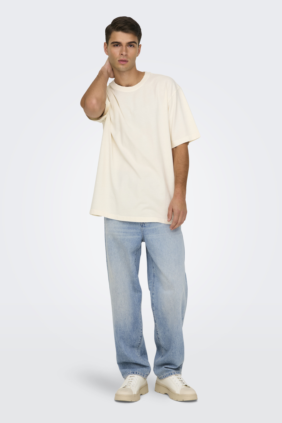 Deze lichtblauwe denim jeans van Only & Sons is een tijdloze aanvulling op je garderobe. De relaxed fit pasvorm zorgt voor een comfortabele en ontspannen look, ideaal voor zowel casual uitstapjes als informele bijeenkomsten. Dankzij het stonewash effect krijgt de jeans een authentieke en veelzijdige uitstraling, die makkelijk te combineren is met diverse outfits. Met een regular waist en klassieke 5-pocket stijl, biedt deze jeans zowel stijl als functionaliteit. Gemaakt van 80% katoen en 20% gerecycled katoen, voelt deze Only & Sons jeans zacht aan en draagt bij aan een duurzamere keuze. De knoopsluiting en normale lengte maken het geheel compleet voor dagelijks gebruik. Deze denim is een uitstekende match voor een relaxte dag in de stad of een gezellige avond met vrienden. Combineer hem met je favoriete T-shirt en sneakers voor een moeiteloze, modieuze look.