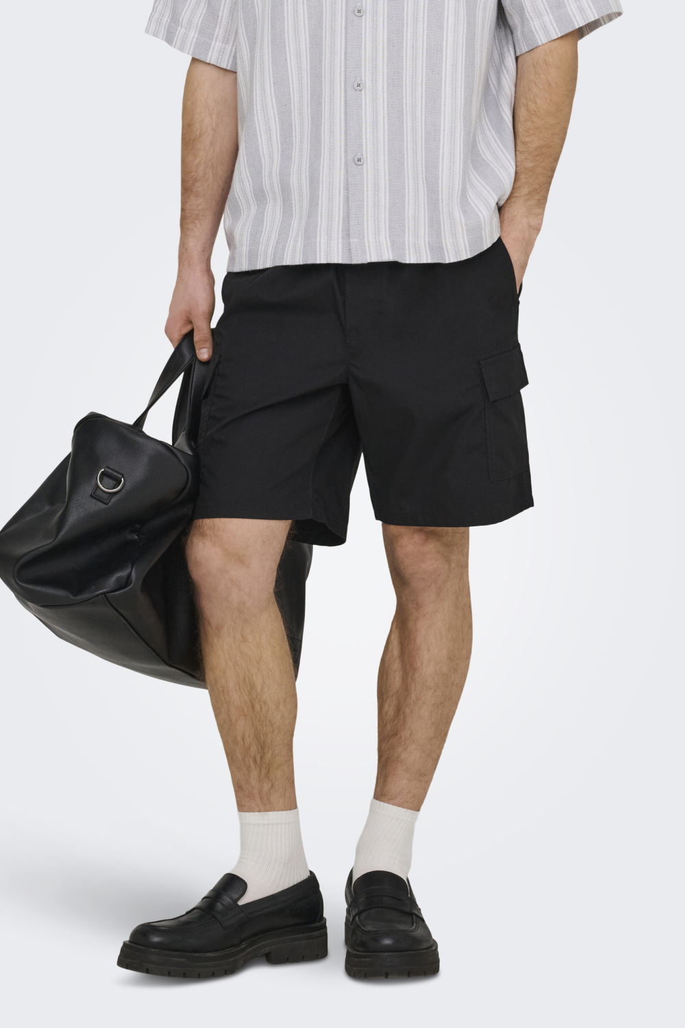 Deze casual korte broek van Only & Sons is een veelzijdige keuze voor je zomeroutfits. Met zijn regular pasvorm en regular waist biedt de broek comfort zonder in te boeten aan stijl. Dankzij de elastische boord zit hij altijd goed en gemakkelijk. De Jet Black kleur zorgt voor een tijdloze uitstraling die eenvoudig te combineren is met verschillende kledingstijlen. Deze broek is gemaakt van een mix van 65% polyester en 35% katoen, wat zorgt voor een lichte en ademende stof, ideaal voor warme dagen. Of je nu een dagje naar het strand gaat of een informele middag in de stad doorbrengt, deze Only & Sons korte broek is de perfecte metgezel. De normale lengte en het praktische ontwerp met zakken maken hem niet alleen stijlvol, maar ook functioneel. Combineer met een luchtig T-shirt en sneakers voor een relaxte, alledaagse look. Met deze broek ben je altijd klaar voor wat de dag je ook brengt, van een spontane strandwandeling tot een middagje in het park.