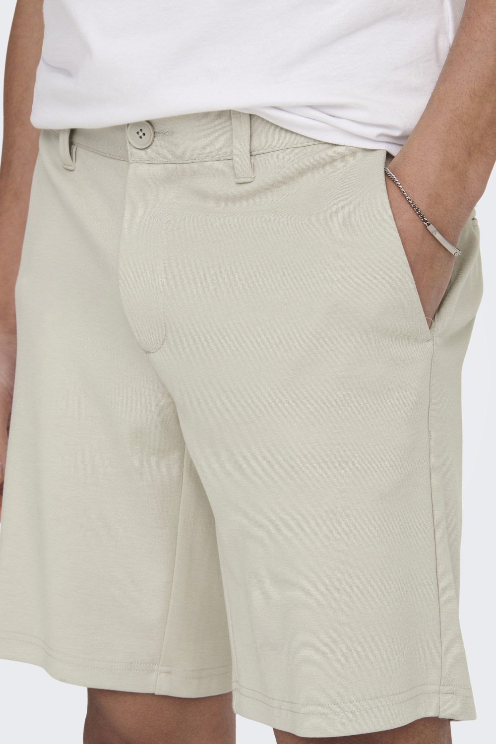Deze stijlvolle Moonstruck korte broek van Only & Sons is een veelzijdig item dat niet mag ontbreken in je zomergarderobe. De shorts hebben een regular fit en zijn gemaakt van een comfortabele mix van 64% viscose, 31% polyester en 5% elastan. Deze samenstelling zorgt voor een lichte, ademende stof die ideaal is voor warme dagen. Uitgerust met steekzakken, biedt de korte broek voldoende ruimte voor al je essentials. De knoop- en ritssluiting zorgen voor een klassieke look en gemak tijdens het dragen. Het tijdloze ontwerp en de neutrale kleur van deze korte broek maken het een uitstekende keuze voor zowel casual als semi-formele gelegenheden. Combineren met een basic t-shirt of een luchtige overhemd geeft je een stijlvolle uitstraling, geschikt voor een dagje uit of een relaxte barbecue. Met een regular waist en normale lengte is deze korte broek perfect afgestemd op een comfortabele pasvorm zonder concessies aan stijl. Versterk je garderobe met dit veelzijdige kledingstuk en geniet van de stijlvolle eenvoud van Only & Sons.