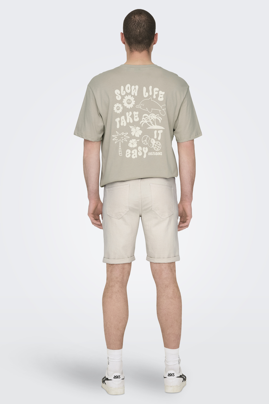 Deze stijlvolle ecru korte broek van Only & Sons is een ideale keuze voor de moderne man. Gemaakt van 99% katoen en 1% elastaan, vormt de broek zich naar jouw lichaam en biedt het een zacht en comfortabel gevoel. Met zijn normale taille en regular fit pasvorm, geeft deze denim stijl korte broek een tijdloos en veelzijdig karakter. De praktische 5-pocket constructie biedt voldoende ruimte voor kleine essentiële spullen. Dankzij de knoop- en ritssluiting is deze korte broek gemakkelijk te dragen bij verschillende activiteiten. Perfect voor zomerse dagen, past deze korte broek moeiteloos bij je dagelijkse outfit. Of je nu een dagje naar het strand gaat of gezellig met vrienden afspreekt, deze korte broek is een veelzijdige aanvulling op je garderobe. Draag hem met een casual T-shirt voor een relaxte look, of combineer met een overhemd voor een iets nettere uitstraling. Door de neutrale kleur kun je creatief zijn met talloze combinaties, terwijl je nog steeds een stijlvolle en coole uitstraling behoudt.