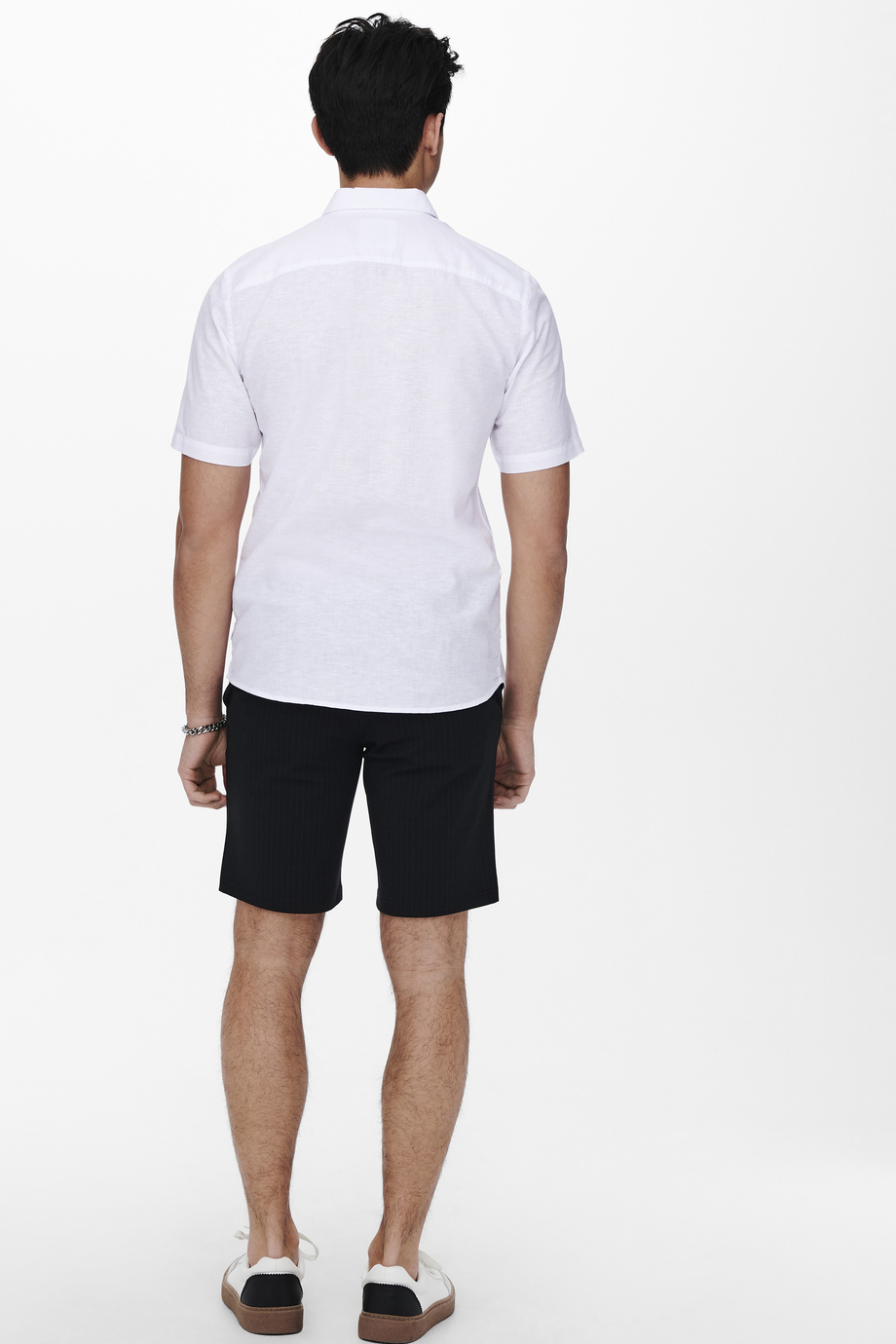 Dit casual witte overhemd met korte mouwen van Only & Sons is een veelzijdige keuze voor elke garderobe. Het overhemd is vervaardigd uit een mix van 35% katoen, 20% gerecycled katoen en 45% linnen, wat het een aangenaam en ademend kledingstuk maakt. De regular fit zorgt voor een comfortabele uitstraling zonder in te boeten op stijl. Met een tijdloze puntkraag en handige knoopsluiting, biedt dit overhemd een strakke en gepolijste look voor alledaagse activiteiten. Dankzij het duurzame materiaal is dit overhemd een uitstekende keuze voor zowel zomerse dagen als voor casual kantooroutfits. Draag het met een korte broek voor een ontspannen dagje uit, of combineer het met een nette pantalon voor wat meer formaliteit. De subtiel doorzichtige stof en lichte textuur geven een frisse en moderne uitstraling. Of je nu naar het strand gaat of een terrasje pakt, dit Only & Sons overhemd is een prima match voor elke gelegenheid.
