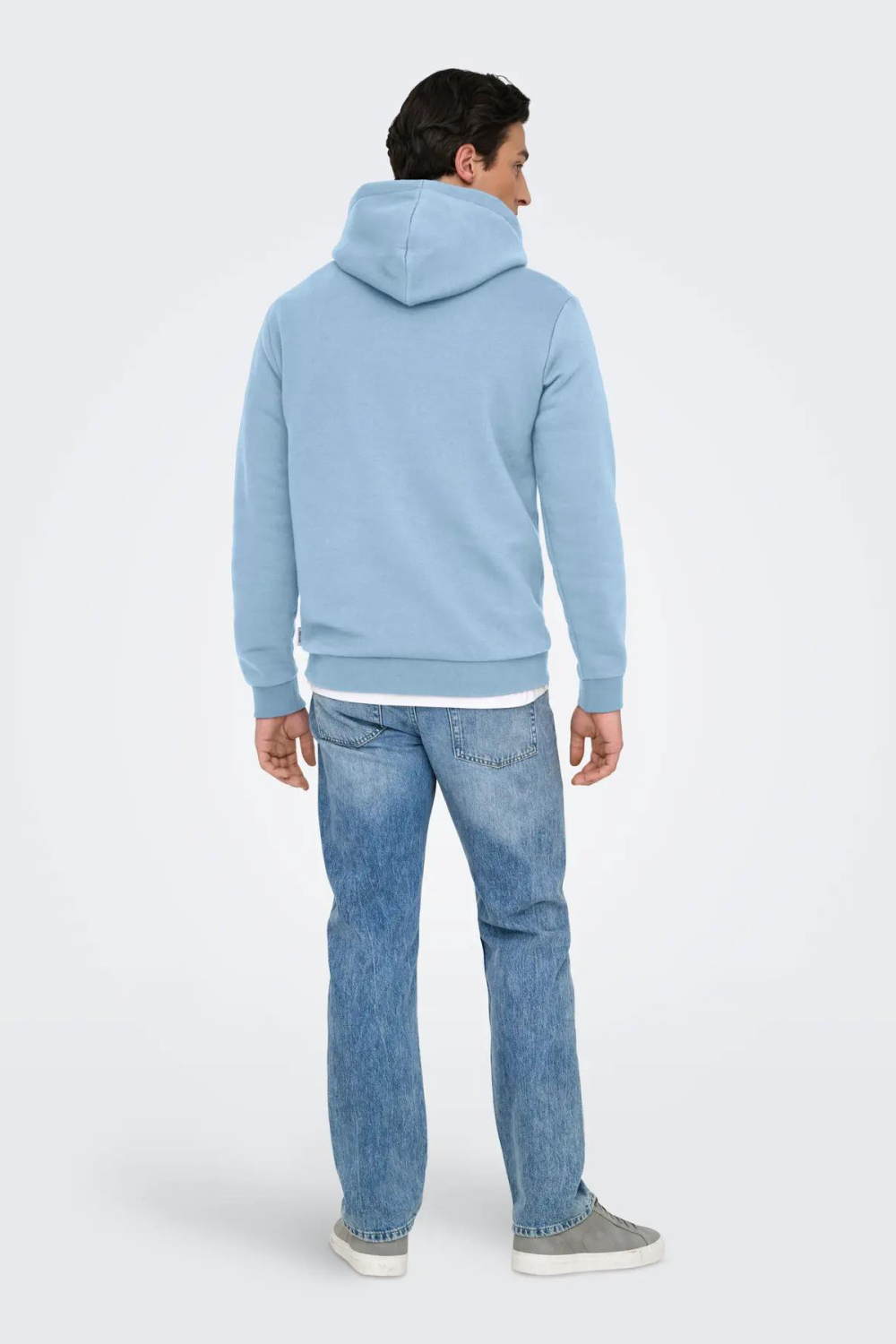 Deze casual sweater van Only & Sons is een veelzijdige aanvulling voor jouw kledingcollectie. De sweater heeft een capuchon en is uitgevoerd in een stijlvolle Cerulean kleur. De regular fit zorgt ervoor dat hij comfortabel zit, terwijl de lange mouwen en de zachte mix van 65% katoen en 35% polyester warmte bieden tijdens koude winterdagen. De handige steekzakken voegen een praktisch element toe, ideaal voor het opbergen van kleine benodigdheden. Dankzij zijn tijdloze design en comfortabele pasvorm is deze sweater perfect voor verschillende gelegenheden. Of je nu een relaxte dag thuis hebt, een wandeling maakt of een informele afspraak hebt, deze sweater past bij elke situatie. Draag hem met een simpele jeans of combineer met een joggingbroek voor een comfortabele, maar stijlvolle look. Met deze sweater vang je moeiteloos een moderne, relaxte uitstraling.
