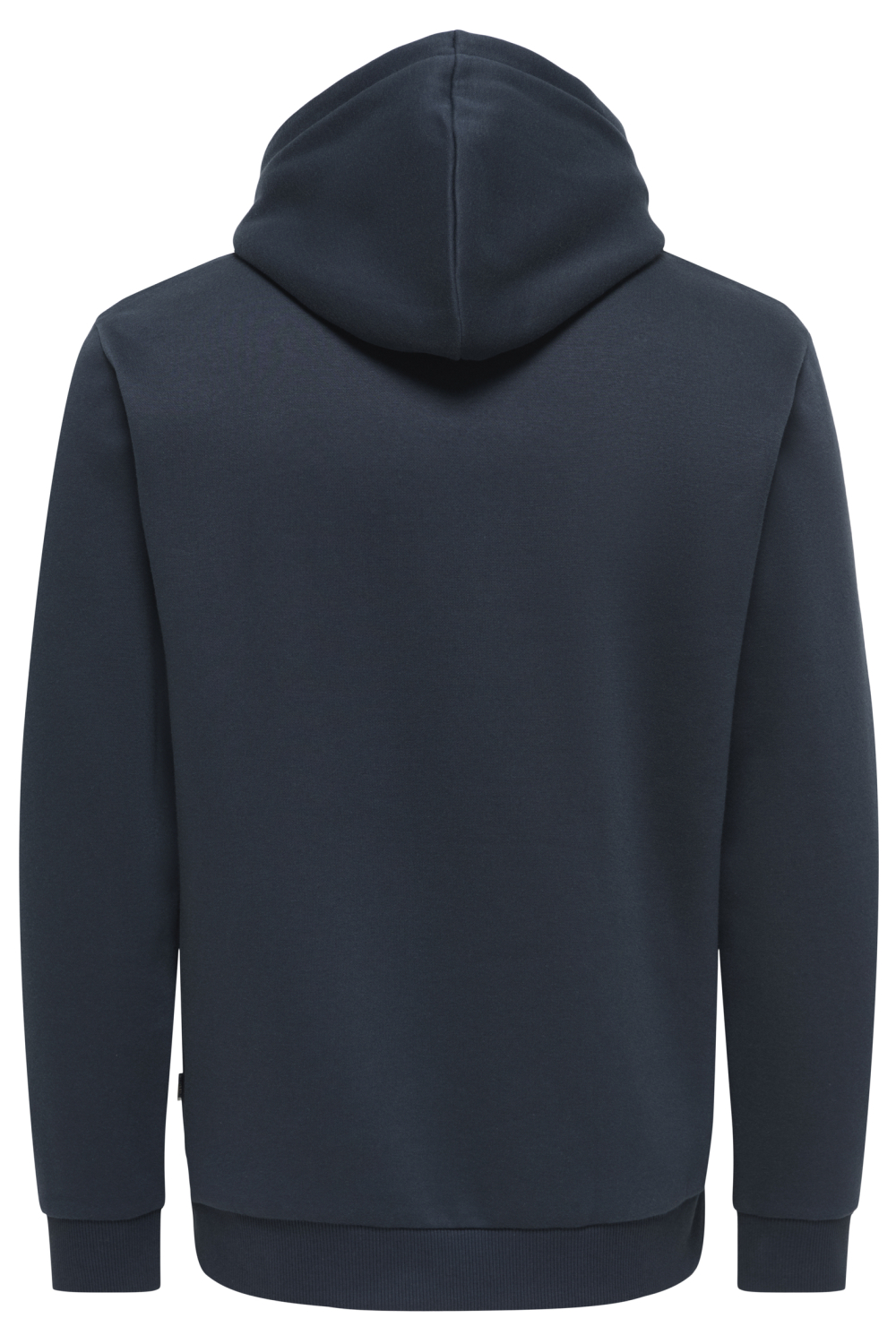 Deze comfortabele Only & Sons sweater in dark navy is een geweldige aanvulling voor jouw casual garderobe. Gemaakt van een zachte mix van 65% katoen en 35% polyester, biedt deze trui een aangenaam draagcomfort. De capuchon met trekkoord en de ruime kangoeroezak geven het kledingstuk een ontspannen uitstraling. Met een regular fit en lange mouwen past hij perfect bij elke lichaamsbouw en voelt hij comfortabel bij dagelijks gebruik. Dankzij de sweatstof is deze sweater ideaal voor de koelere zomerdagen of ontspannen avonden thuis. Deze heren sweater leent zich uitstekend voor informele gelegenheden. Combineer hem met een jeans en sneakers voor een relaxte weekendlook of draag hem bij een joggingbroek voor ultiem comfort tijdens sport of vrije tijd. De donkerblauwe kleur maakt het gemakkelijk om te combineren met verschillende outfits en voegt een subtiele stijl toe aan je kledingkast. Of je nu op pad gaat met vrienden of een rustdag plant, deze sweater slaat de plank nooit mis.