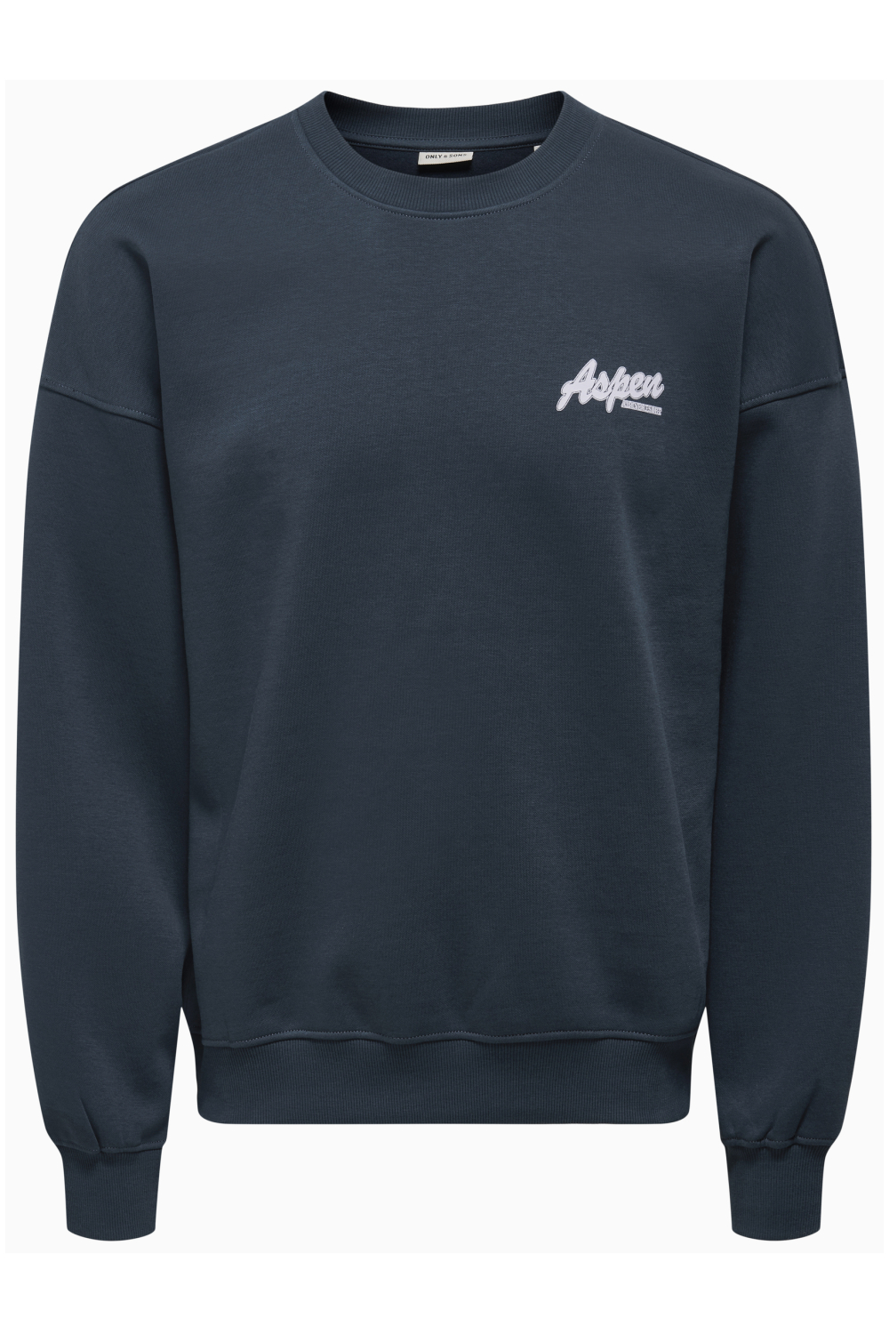Deze casual sweater van Only & Sons, speciaal ontworpen voor heren, vormt een stijlvolle en comfortabele aanvulling op je wintergarderobe. Gemaakt van een zachte sweatstof met 65% katoen en 35% polyester, biedt de trui een aangenaam draagcomfort. Met een regular fit pasvorm ben je verzekerd van een ontspannen look die moeiteloos past bij verschillende outfits. De donkerblauwe kleur en de opvallende print op de rug geven deze sweater een bijzonder karakter, ideaal voor informele gelegenheden. De ronde hals en de normale lengte maken deze sweater perfect voor dagelijks gebruik, of je nu een relaxte dag thuis hebt of een avondje uit met vrienden plant. Combineer de sweater eenvoudig met je favoriete jeans of een comfortabele joggingbroek voor een veelzijdige outfit. De lange mouwen zorgen ervoor dat je zelfs op koudere dagen warm en stijlvol blijft. Deze Aspen-geïnspireerde sweater is niet alleen modieus maar ook functioneel, en maakt het gemakkelijk om zonder al te veel moeite een statement te maken.
