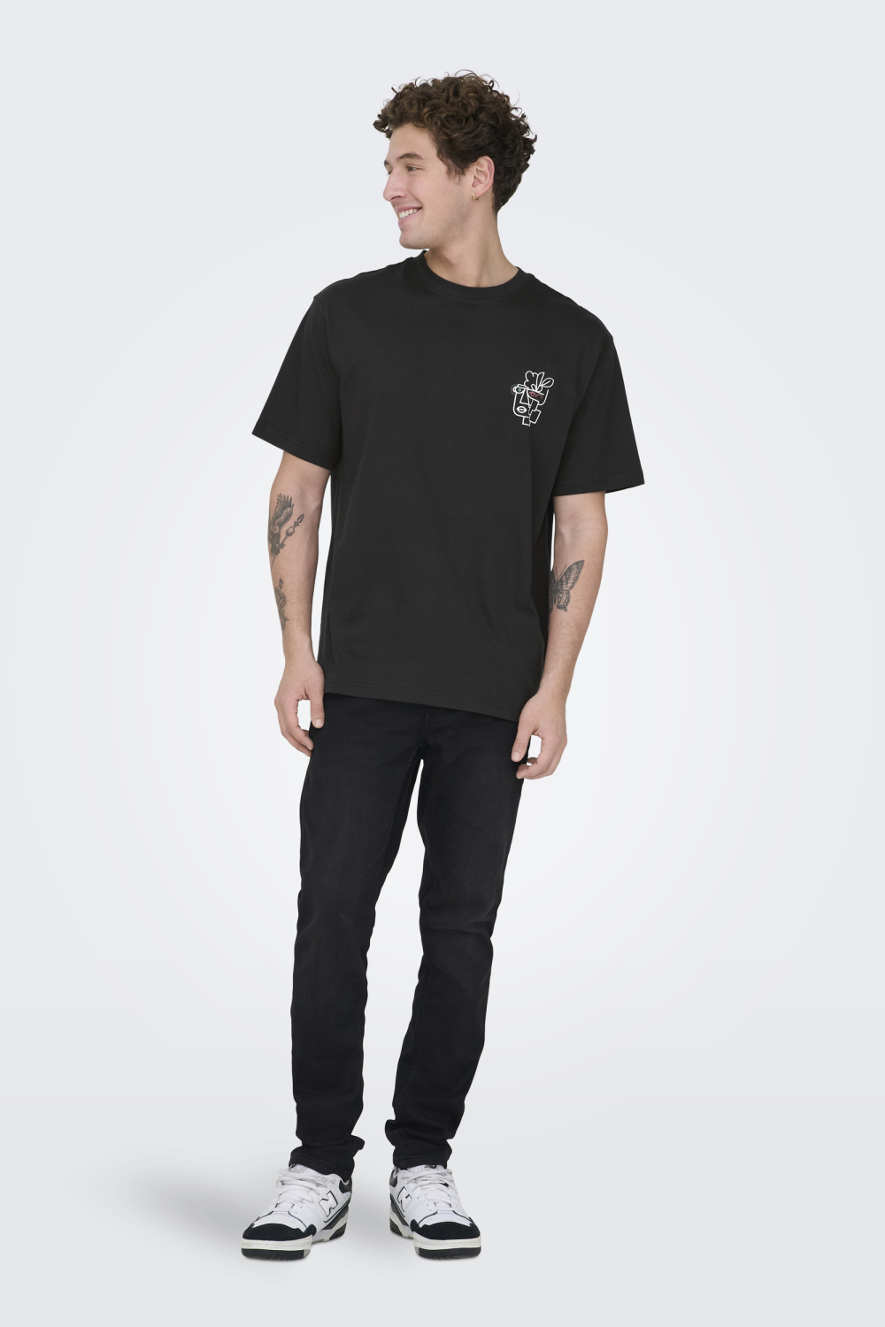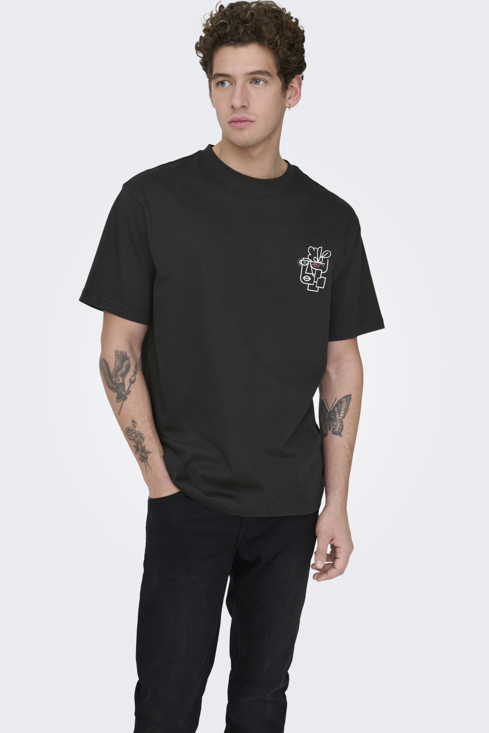 Dit casual T-shirt van Only & Sons is een veelzijdige aanvulling voor je voorjaarsgarderobe. Het T-shirt heeft een regular fit die zorgt voor een comfortabele pasvorm, ideaal voor dagelijks gebruik. Gemaakt van 100% biologisch katoen, biedt het een zachte en ademende stof die perfect is voor warmere dagen. De opvallende, artistieke print op de borst en rug voegt een speelse touch toe aan het klassieke zwarte ontwerp, waardoor het zowel uniek als stijlvol is. Dankzij de ronde hals en korte mouwen is dit T-shirt een uitstekende keuze voor informele gelegenheden. Combineer het met een jeans of shorts voor een relaxte look, geschikt voor een dagje uit met vrienden of een casual afspraak. Het duurzame materiaal maakt het ook een bewuste keuze voor de milieubewuste drager. Of je nu een wandeling maakt in het park of gezellig thuis blijft, dit T-shirt biedt de perfecte balans tussen stijl en comfort.