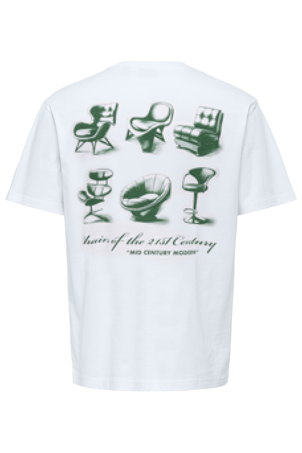 Dit casual heren T-shirt van Only & Sons is een veelzijdige toevoeging aan je lente-garderobe. Het T-shirt heeft een regular fit en is gemaakt van 100% biologisch katoen, wat zorgt voor een aangename en ademende draagervaring. De ronde hals en korte mouwen maken het ideaal voor warmere dagen, terwijl de subtiele opdruk op de borst een eigentijdse touch toevoegt. Aan de achterkant van het T-shirt vind je een opvallend grafisch ontwerp met retro geïnspireerde stoelen, wat het een unieke uitstraling geeft. Deze combinatie van stijl en comfort maakt het T-shirt perfect voor informele uitjes, zoals een middag in het park of een casual avondje met vrienden. Dankzij de normale lengte kun je dit T-shirt gemakkelijk combineren met zowel jeans als shorts, voor een moeiteloze, modieuze look.