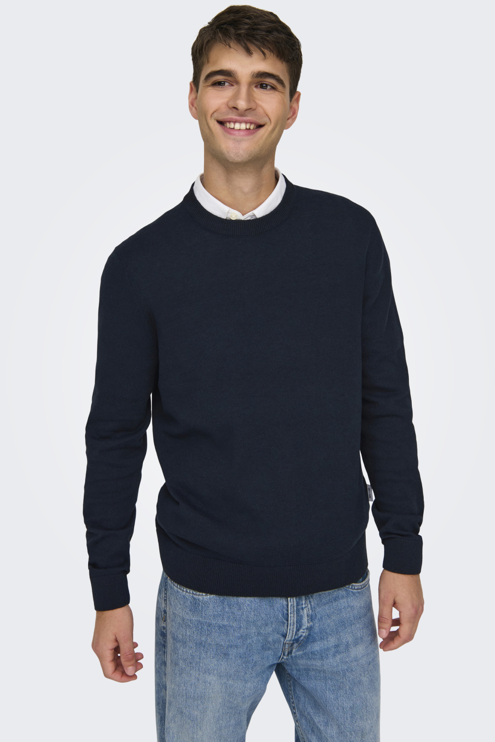 Deze donkerblauwe trui van Only & Sons is een veelzijdige keuze voor je herfstgarderobe. Met een regular fit en een comfortabele ronde hals, biedt deze trui de perfecte balans tussen stijl en comfort. Gemaakt van 70% katoen en 30% gerecycled polyester, is dit kledingstuk niet alleen aangenaam te dragen, maar ook een duurzame keuze. De lange mouwen zorgen voor extra warmte op koelere dagen, terwijl de rijke dark sapphire kleur gemakkelijk te combineren is met andere kledingstukken. Of je nu een casual look wilt creëren met een spijkerbroek of het een meer geklede twist wilt geven door het te dragen over een overhemd, deze trui past perfect bij elke gelegenheid. Dankzij de normale lengte draagt het soepel en valt het mooi op het lichaam. Ideaal voor zowel een dag op kantoor als een ontspannen weekenduitje. Met deze Only & Sons trui kies je voor een stijlvol en tijdloos item dat je bij diverse gelegenheden kunt dragen.