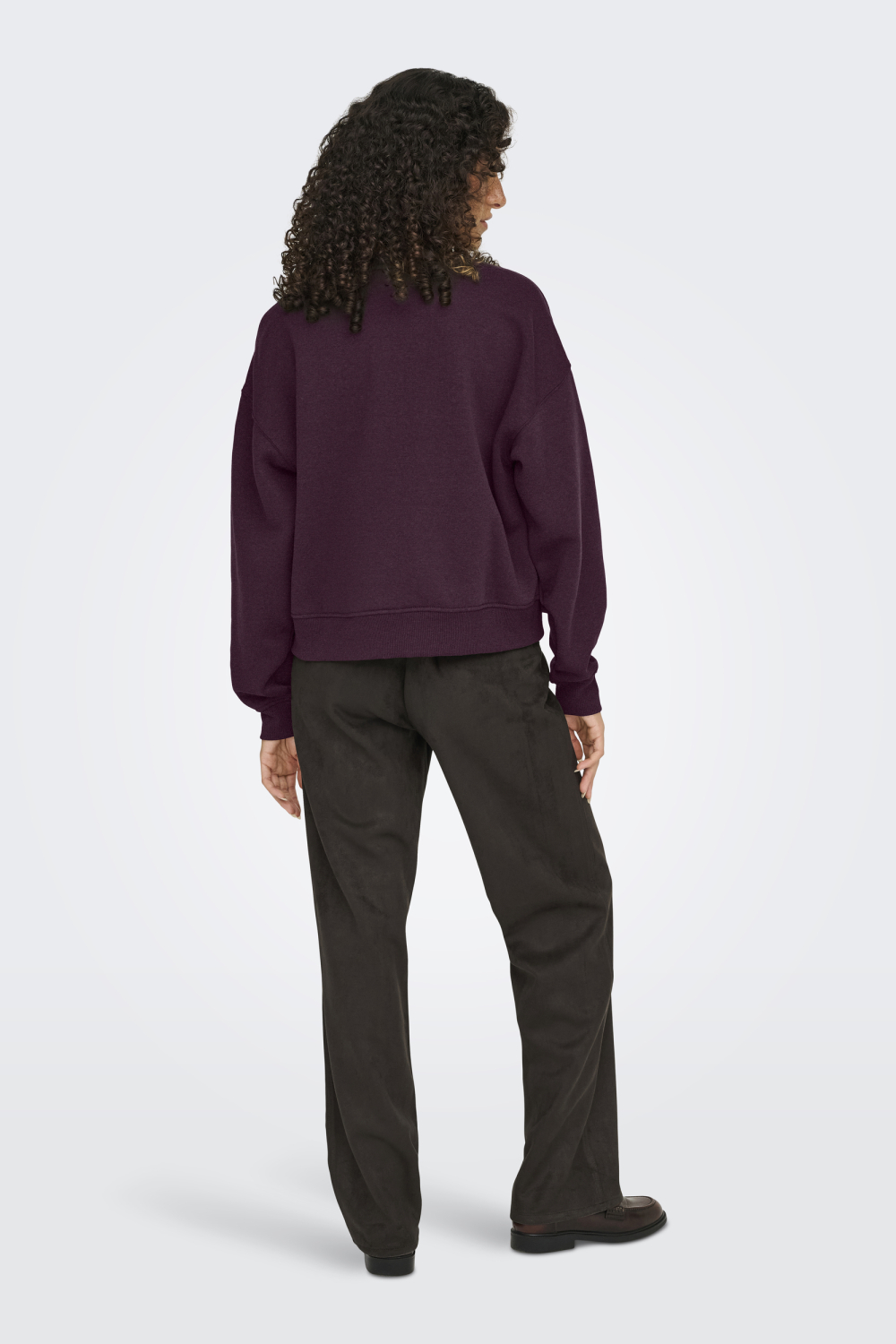 Deze Only sweater voor dames is een uitstekende keuze voor jouw wintergarderobe. Met zijn eigentijdse bordeauxrode kleur en opvallende tekstprint 'Art Collection' op de voorkant, voeg je gemakkelijk een stijlvol statement toe aan je casual outfits. De sweater is vervaardigd uit een comfortabele mix van 65% polyester en 35% katoen, wat zorgt voor een zachte en warme draagervaring tijdens koude dagen. De regular fit en de ronde hals geven het een ontspannen uitstraling die bij veel gelegenheden past.