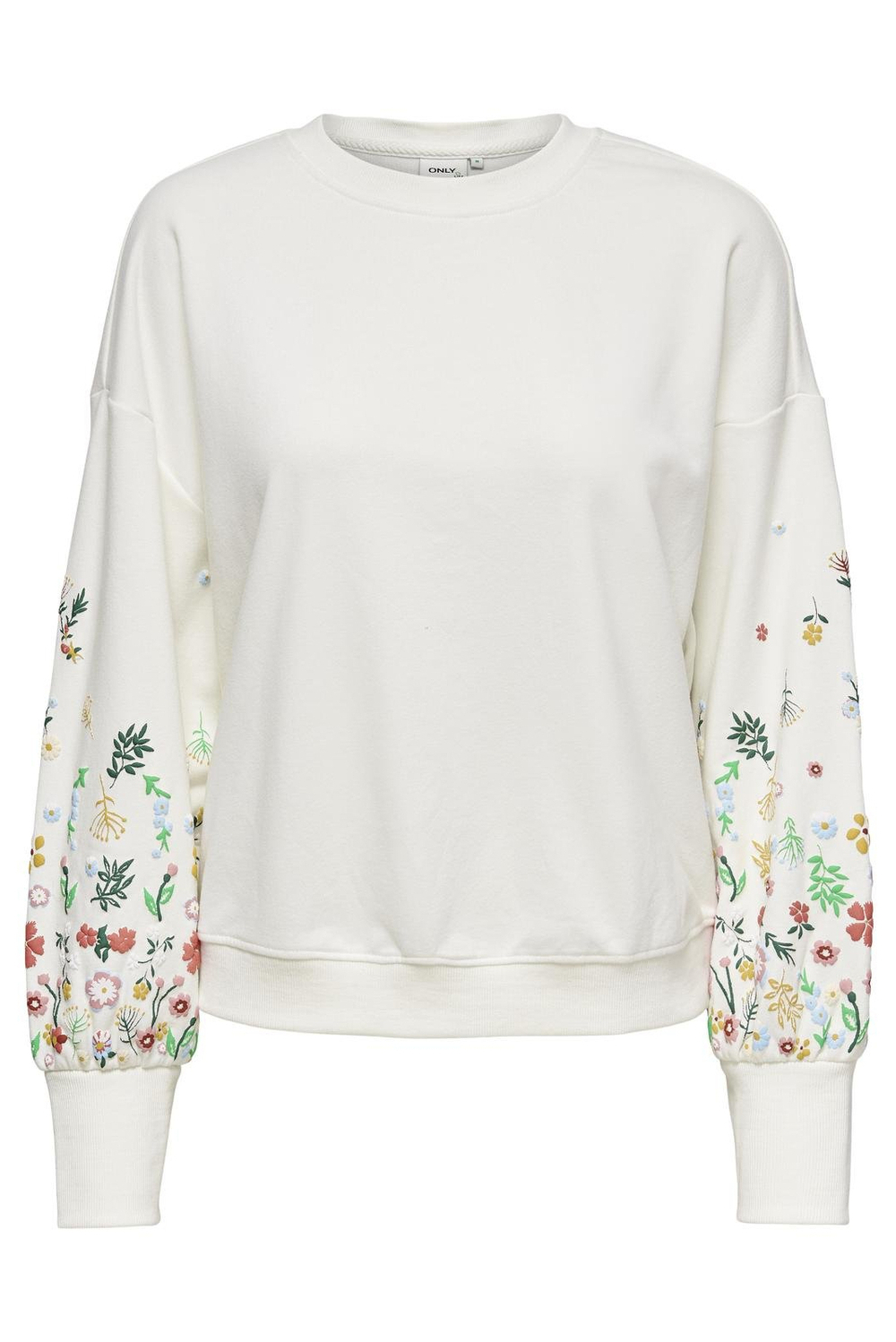 Deze casual Only sweater is een fijne toevoeging voor je wintergarderobe. Uitgevoerd in de kleur 'cloud dancer', straalt hij een serene en frisse uitstraling uit. Dankzij de combinatie van 60% katoen en 40% polyester geniet je van een comfortabele pasvorm die lang mooi blijft. De regular fit is ideaal voor elke gelegenheid, terwijl de ronde hals een klassieke touch geeft. Wat deze sweater echt bijzonder maakt, zijn de lange mouwen met prachtige bloemenprint, die voor een speelse en vrouwelijke touch zorgen.
