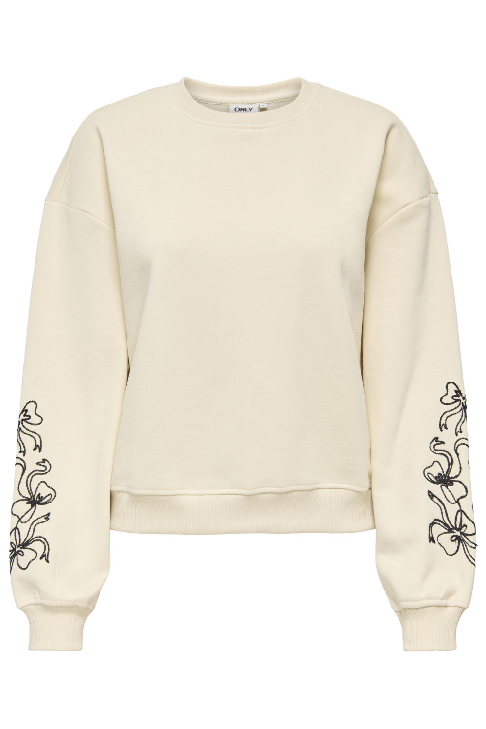 De casual sweater van Only biedt met zijn zachte, crèmekleurige tint en stijlvolle zwarte bloemendetails op de mouwen, een eigentijdse toevoeging aan je dagelijkse outfit. Deze sweater is gemaakt van een mix van 60% katoen en 40% gerecycled polyester, wat een comfortabele en duurzame keuze garandeert. De ronde hals en regular fit maken het een veelzijdig kledingstuk dat moeiteloos in je lente garderobe past. Of je nu een informele dag hebt of een ontspannen avondje uit plant, deze sweater is een betrouwbare metgezel. Dankzij de lange mouwen en normale lengte kun je hem eenvoudig combineren met je favoriete jeans of een luchtige rok. De subtiele structuur van de stof geeft een extra touch aan je casual look, waardoor je altijd stijlvol voor de dag komt.