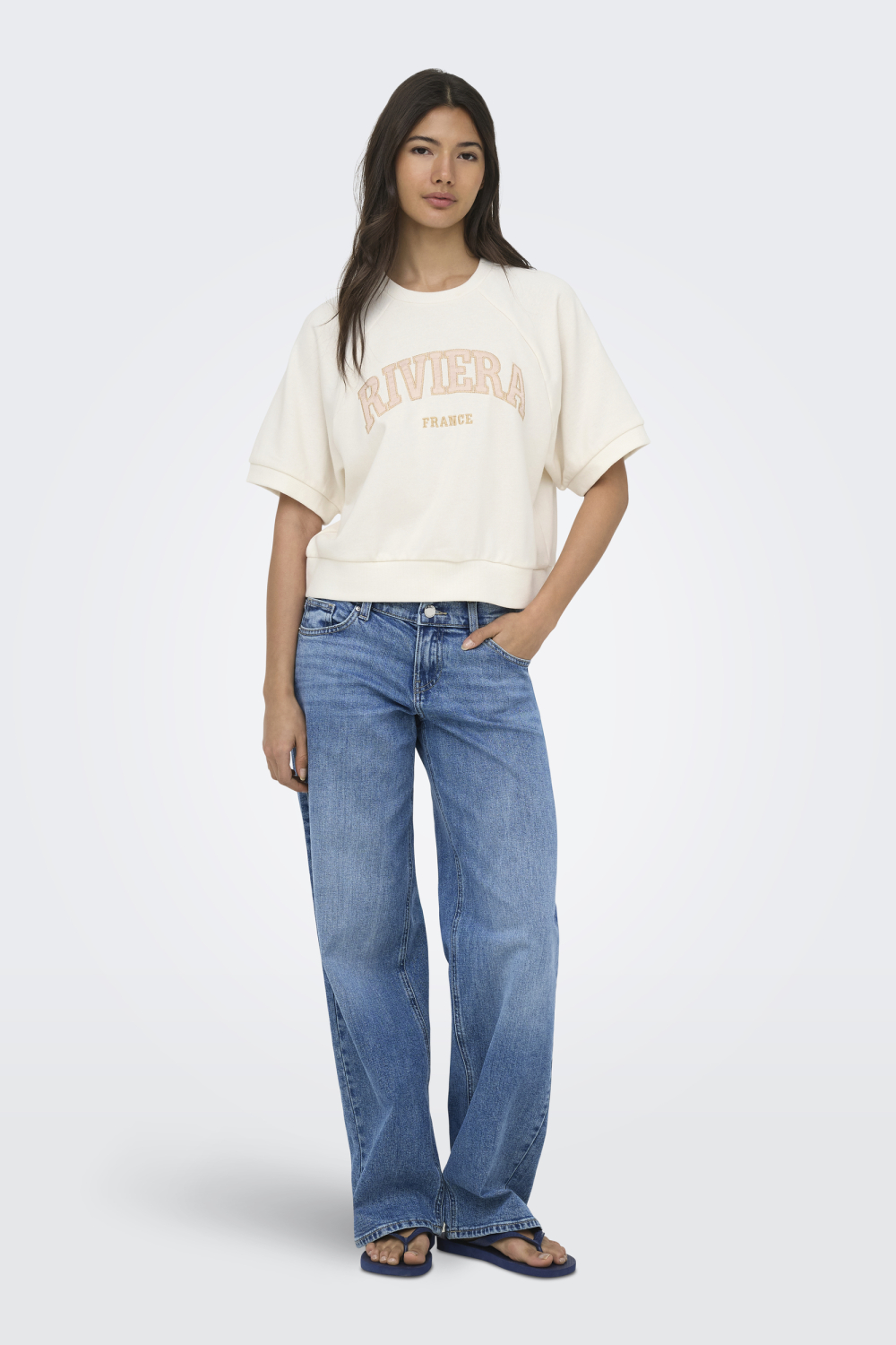 Dit casual dames T-shirt van Only is een veelzijdige toevoeging aan je zomercollectie. Gemaakt van 60% katoen en 40% gerecycled polyester, biedt het een duurzaam en comfortabel ontwerp. De zachte, crèmekleurige stof past naadloos bij de lichte zomerse sfeer en de regular fit zorgt voor een ontspannen, stijlvolle uitstraling. De opvallende geborduurde tekst 'RIVIERA FRANCE' op de voorkant geeft het T-shirt een trendy en opvallend element die je look direct omhoog tilt. De ronde hals en korte mouwen maken dit T-shirt ideaal voor een warme dag, of je nu een strandwandeling maakt of geniet van een dagje in de stad. Het normale model kan gemakkelijk worden gecombineerd met zowel jeans als shorts voor verschillende casual outfits. Of je je nu klaarmaakt voor een zomers feestje of een relaxte dag thuis, dit Only T-shirt is een keuze die zowel gemak als stijl biedt.