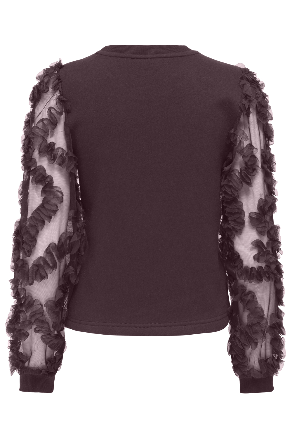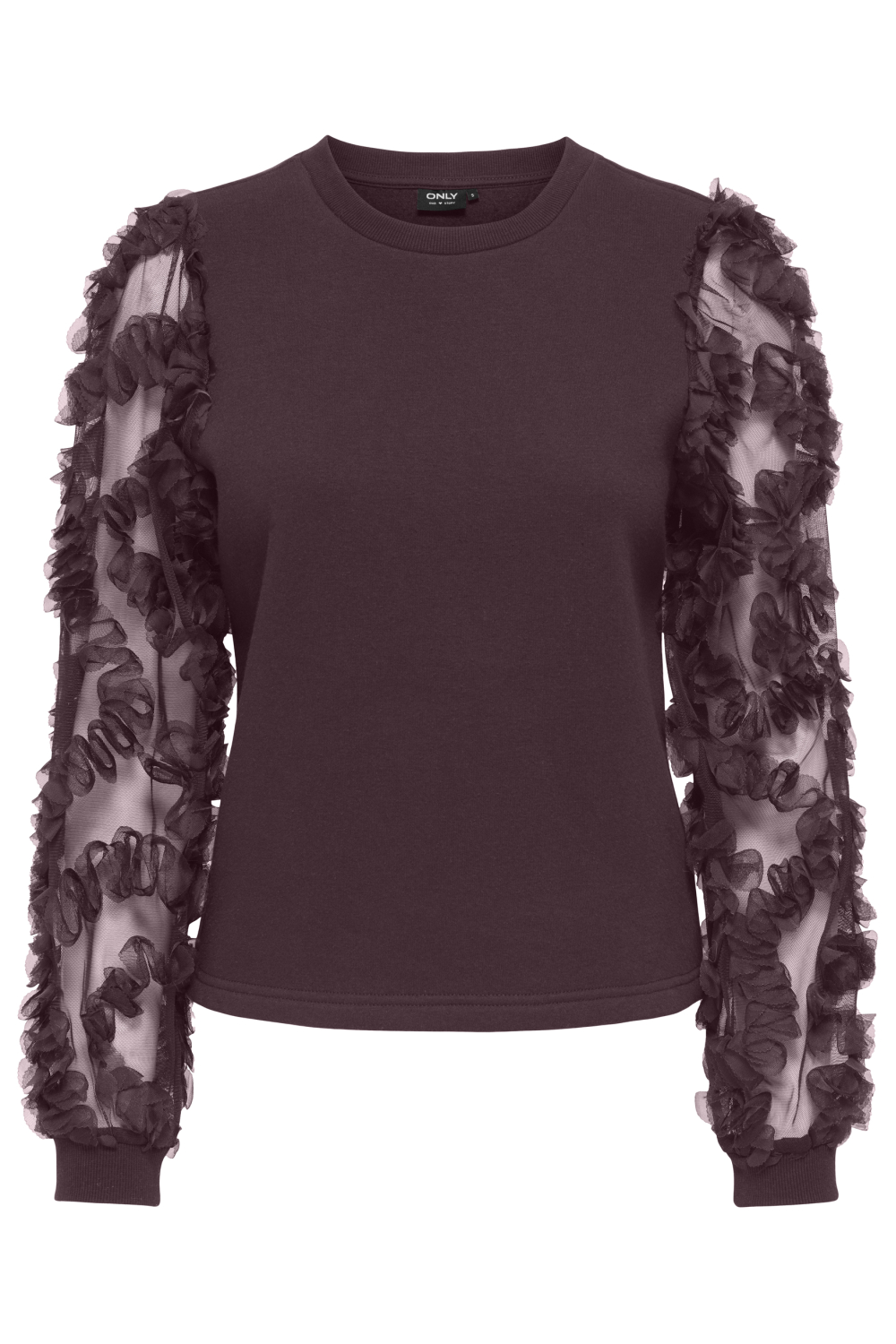 Deze casual sweater van Only is een perfecte aanvulling op je wintergarderobe. Uitgevoerd in een rijke winetasting kleur, heeft deze trui een unieke uitstraling door zijn structuurpatroon en de bijzondere lange mouwen. De mouwen zijn voorzien van transparante details en sierlijke ruches, waardoor de sweater een speels, maar toch elegant effect krijgt. De regular pasvorm en de ronde hals maken het kledingstuk comfortabel en eenvoudig te dragen voor verschillende gelegenheden.