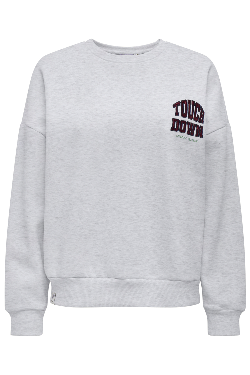 Deze casual sweater van Only biedt een perfecte combinatie van comfort en stijl voor dames. Met een regular fit pasvorm en gemaakt van een zachte mix van 60% katoen en 40% polyester, is deze sweater een ideale keuze voor het herfstseizoen. De lichtgrijze melange kleur zorgt voor een veelzijdige en moeiteloze look, terwijl de ronde hals een klassieke touch toevoegt. Een opvallend detail is de tekst "Touch Down" op de borst, wat de sweater een sportieve uitstraling geeft.