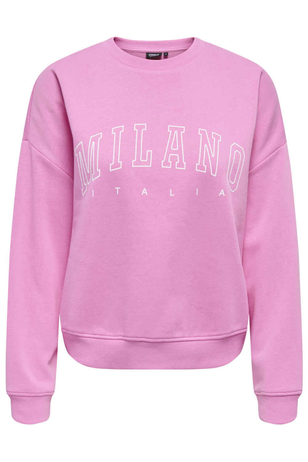 Deze fuchsia roze sweater van Only is een casual en comfortabele keuze voor je wintergarderobe. Met zijn regular fit pasvorm en lange mouwen biedt deze sweater een ontspannen en warme stijl. De ronde hals voegt een klassieke touch toe, terwijl het opvallende "MILANO ITALIA" tekstpatroon aan de voorkant zorgt voor een speelse, trendy uitstraling. De sweater is vervaardigd uit 60% katoen en 40% gerecycled polyester, waardoor het een duurzame en verantwoorde keuze is.