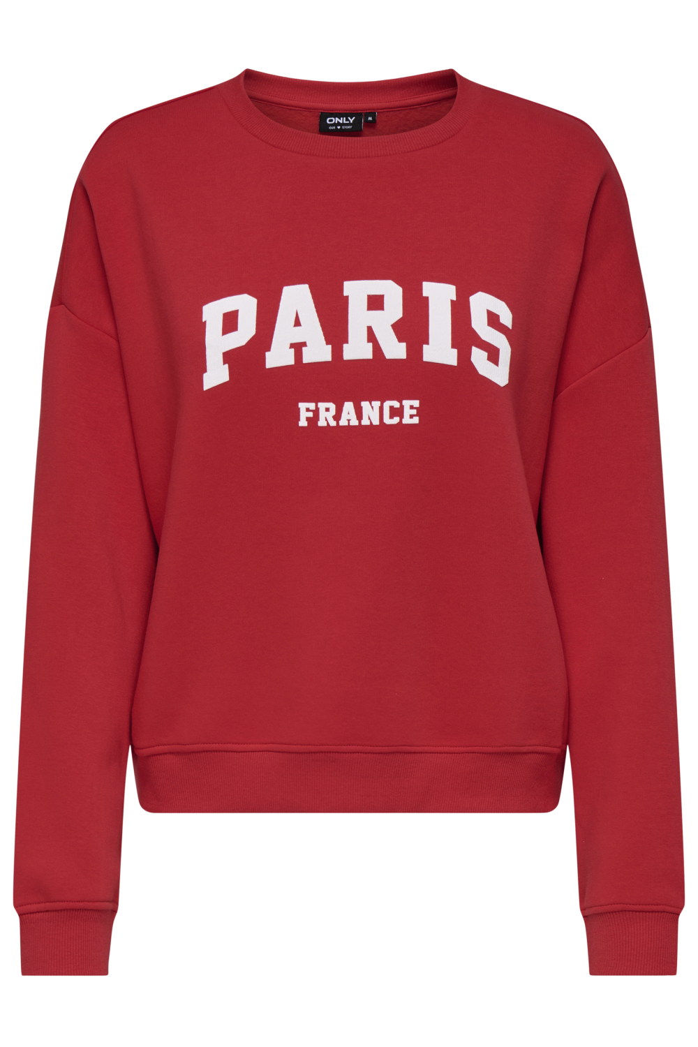 Deze rode Only sweater met de opvallende tekst "PARIS FRANCE" is een ideale keuze voor je casual garderobe. Gemaakt van een duurzame mix van 60% katoen en 40% gerecycled polyester, biedt deze trui niet alleen comfort maar ook bewust gekozen materialen. De regular pasvorm met lange mouwen zorgt voor een nonchalante, maar toch stijlvolle look die perfect past bij de herfst. De ronde hals en normale lengte geven de sweater een klassieke uitstraling die gemakkelijk te combineren is met verschillende stijlen. De tekstprint op de borst voegt een speelse touch toe en maakt van deze sweater een veelzijdig item dat je bij uiteenlopende gelegenheden kunt dragen. Combineer hem met een jeans voor een dagje uit in de stad of met een rok voor een trendy look. Deze Only sweater is een betrouwbare keuze die een comfortabele en modieuze uitstraling biedt. Ideaal voor dagelijkse activiteiten, of je nu gewoon thuis bent of op pad gaat.