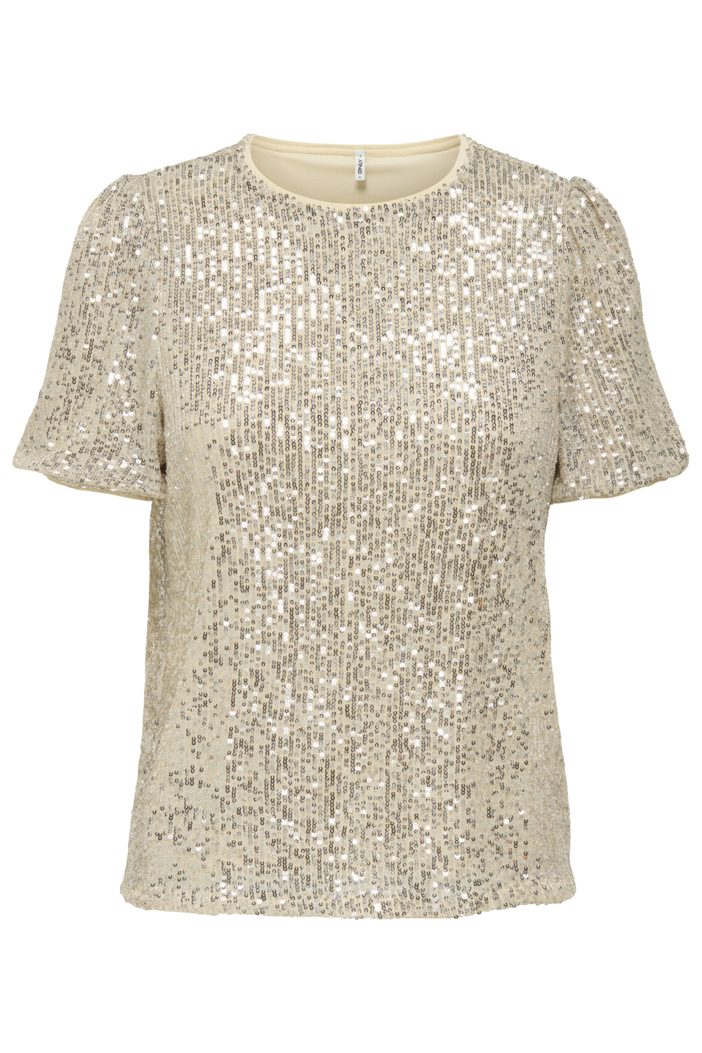 Dit elegante T-shirt van Only straalt met zijn opvallende pailletten. De gouden kleur en ronde halslijn zorgen voor een moderne touch, perfect voor een stijlvolle party uitstraling. Gemaakt van 100% polyester, zorgt dit dames T-shirt voor een comfortabel draagcomfort met zijn regular fit. De korte mouwen geven het geheel een speelse, maar chique look die geschikt is voor winterse feesten en evenementen.