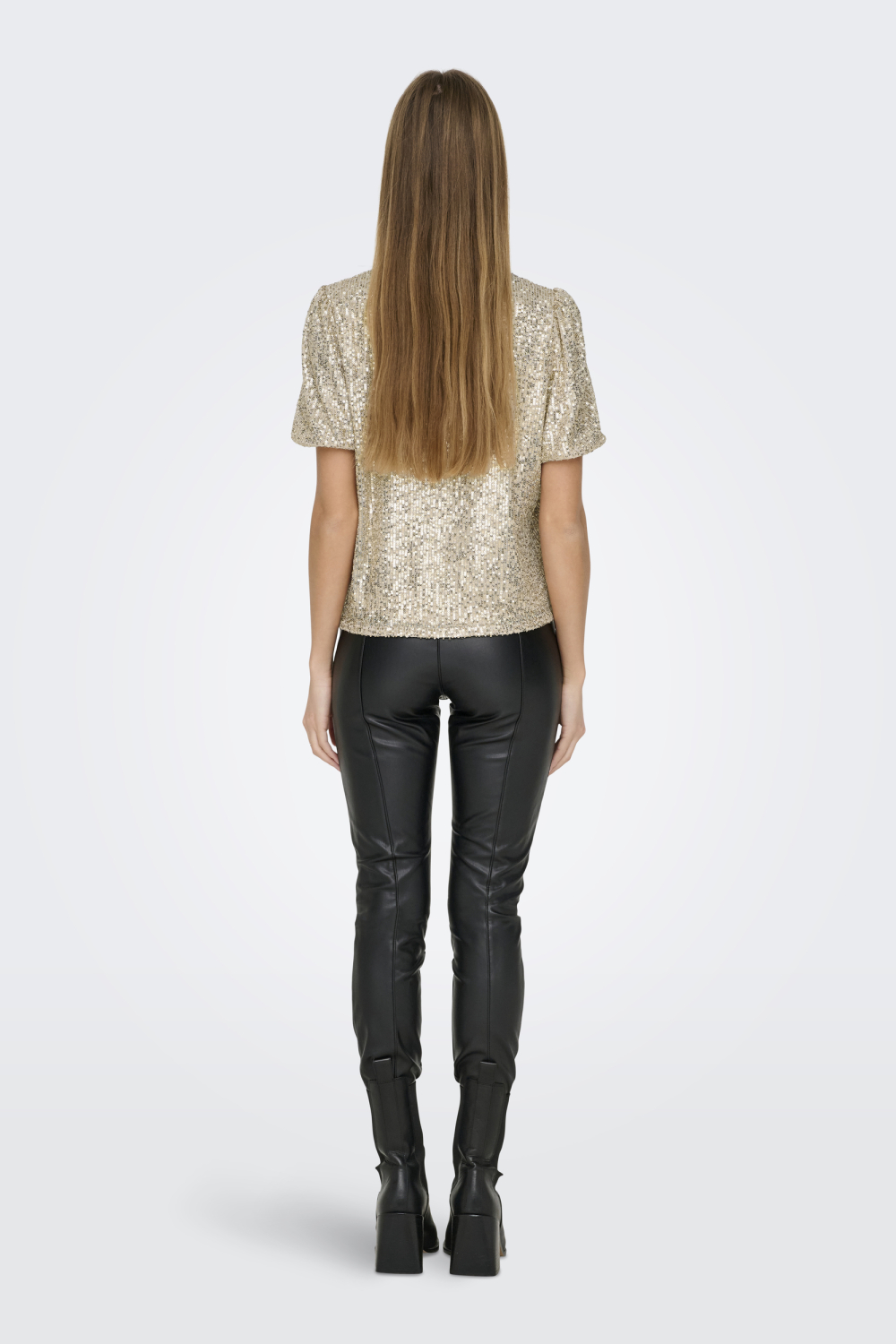 Het T-shirt heeft een normale lengte en is eenvoudig te combineren met zowel een strakke broek als een rok voor een glamoureuze avondlook. Het gedetailleerde paillettenpatroon maakt het een echte eye-catcher, ideaal voor zowel een avondje uit als een speciale gelegenheid. Voeg dit veelzijdige kledingstuk van Only toe aan je garderobe en je bent klaar voor elke feestelijke gelegenheid.