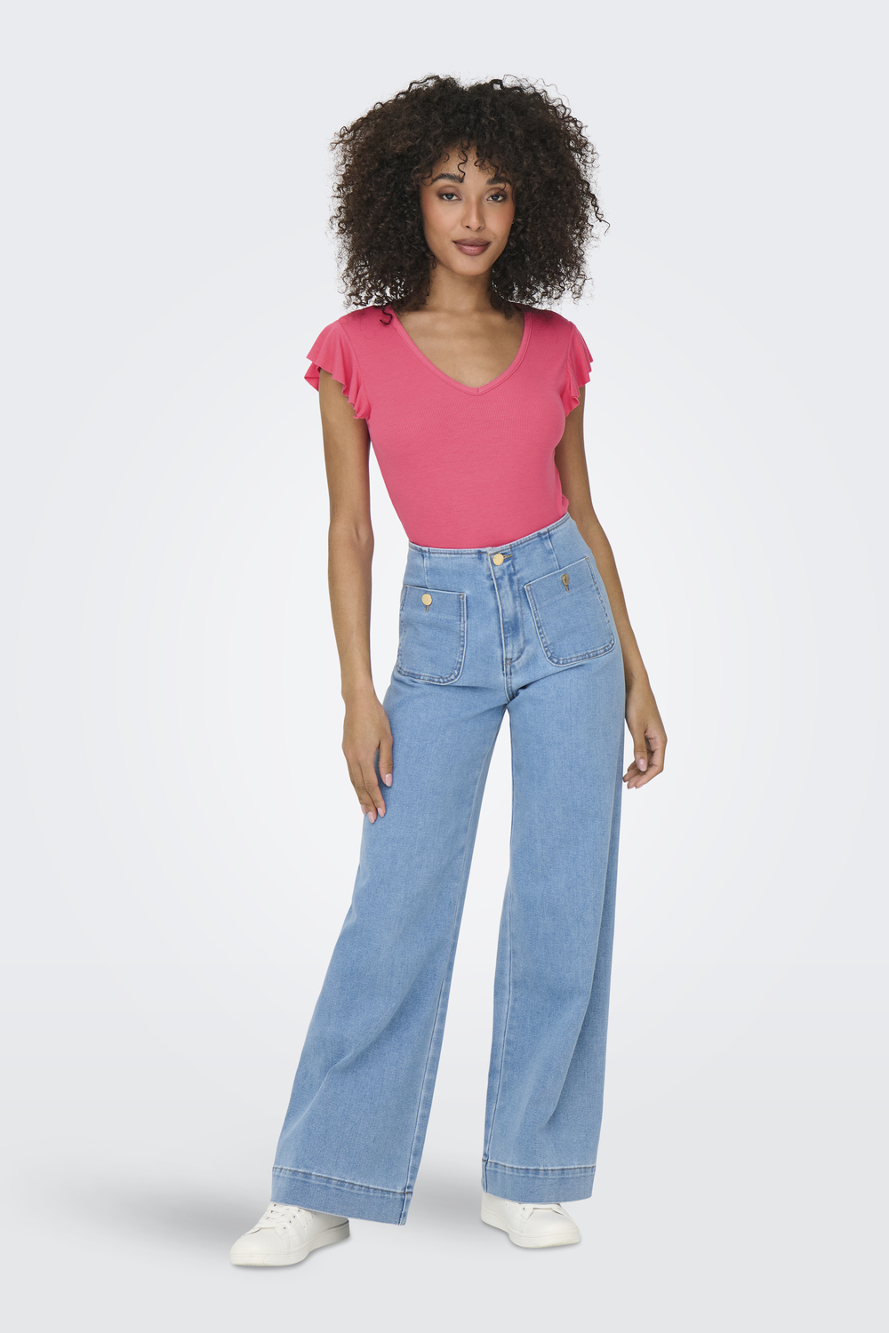Dit zomerse Only T-shirt in de kleur Camellia Rose biedt een perfecte mix van stijl en comfort. Dankzij de regular fit past het comfortabel, terwijl de V-hals een vrouwelijke touch toevoegt. De kapmouwen zijn speels geribbeld en geven het T-shirt een stijlvolle uitstraling, ideaal voor een casual dag. Gemaakt van 95% viscose en 5% elastaan, voelt het zacht aan en zit het heerlijk om je lichaam. Met zijn structuurpatroon is dit T-shirt een veelzijdige keuze voor jouw zomergarderobe. Of je nu een ontspannen dag op het terras doorbrengt of een informele bijeenkomst hebt, dit Only T-shirt is een prima keuze. Combineer het met een lichte denim of een luchtige rok voor een complete, modieuze look die zowel elegant als eenvoudig is. De normale lengte zorgt ervoor dat het shirt makkelijk te matchen is met diverse outfits. Voeg het toe aan je dagelijkse look en ervaar het comfort en de stijl die Only te bieden heeft.