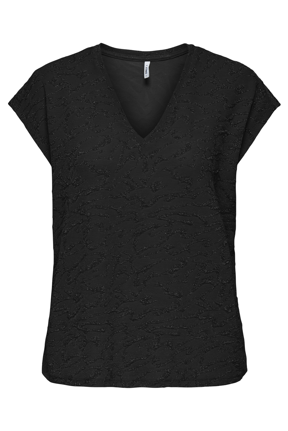 Met zijn normale lengte biedt dit Only T-shirt veelzijdige stijlopties. Combineer het met een skinny jeans en enkellaarsjes voor een casual, maar toch verzorgde look. Dankzij het feestelijke, maar niet overdreven glitterpatroon, is het ook geschikt voor een feestelijke gelegenheid. Dit dames T-shirt is niet alleen stijlvol, maar ook functioneel, en voegt een sprankel toe aan elke outfit zonder te veel op te vallen. Het is een must in jouw kledingkast als je houdt van een vleugje glamour.