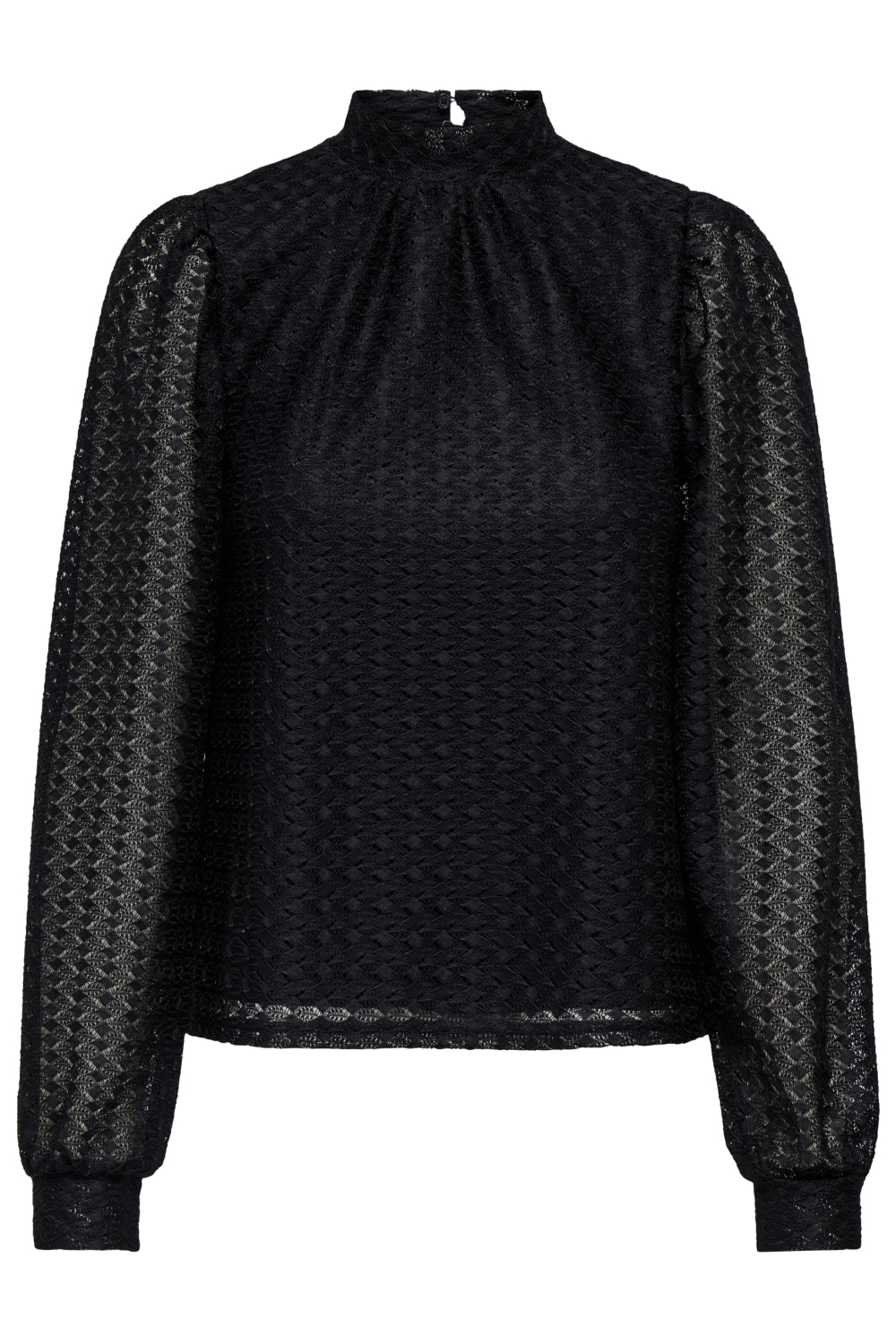 Dit zwarte dames T-shirt van Only is een verfijnde toevoeging aan je herfstgarderobe. Het T-shirt heeft een regular fit en is gemaakt van 100% polyester, waardoor het zowel licht als comfortabel is. De high neck en de lange mouwen geven het een elegante uitstraling, terwijl het kanten patroon een subtiele verfijning toevoegt. Dankzij de knoopsluiting aan de achterkant krijg je een klassieke look met een moderne twist, die veelzijdig inzetbaar is voor verschillende gelegenheden.