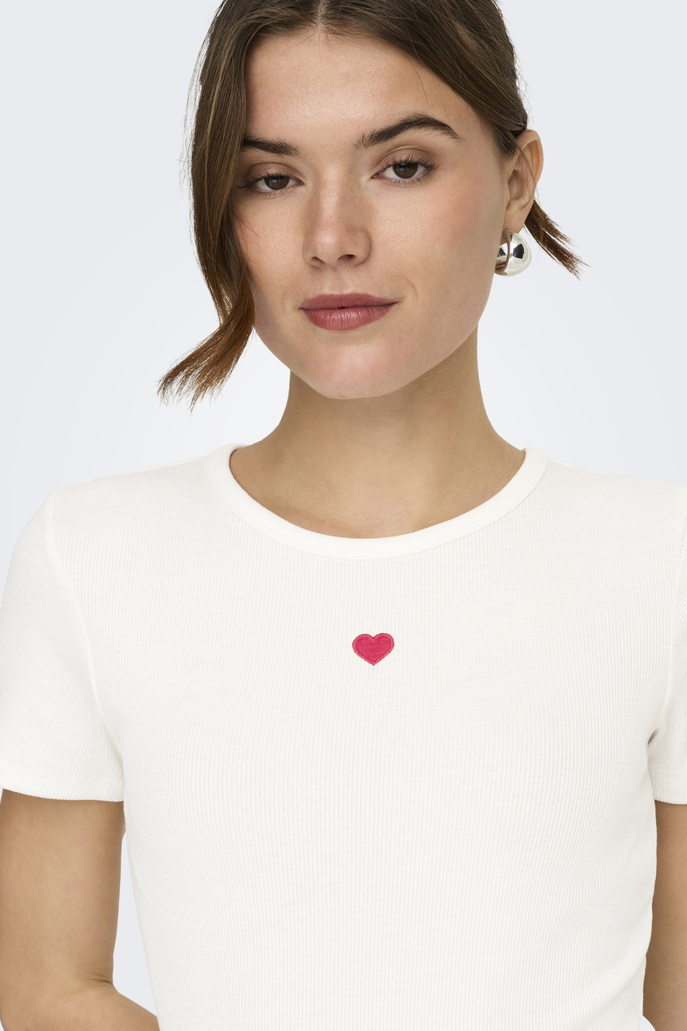 Dit dames T-shirt van Only biedt een stijlvolle balans tussen eenvoud en detail. Het witte ontwerp met een subtiel geborduurd roze hart op de borst voegt een speels element toe zonder te overheersen. Met de regular pasvorm en de ronde halslijn is dit T-shirt een comfortabele keuze die zowel casual als modern aandoet. De korte mouwen maken het perfect voor de lente, en de stof van 65% polyester, 30% viscose en 5% elastan zorgt voor een zachte, soepele draagervaring die de hele dag goed aanvoelt.
