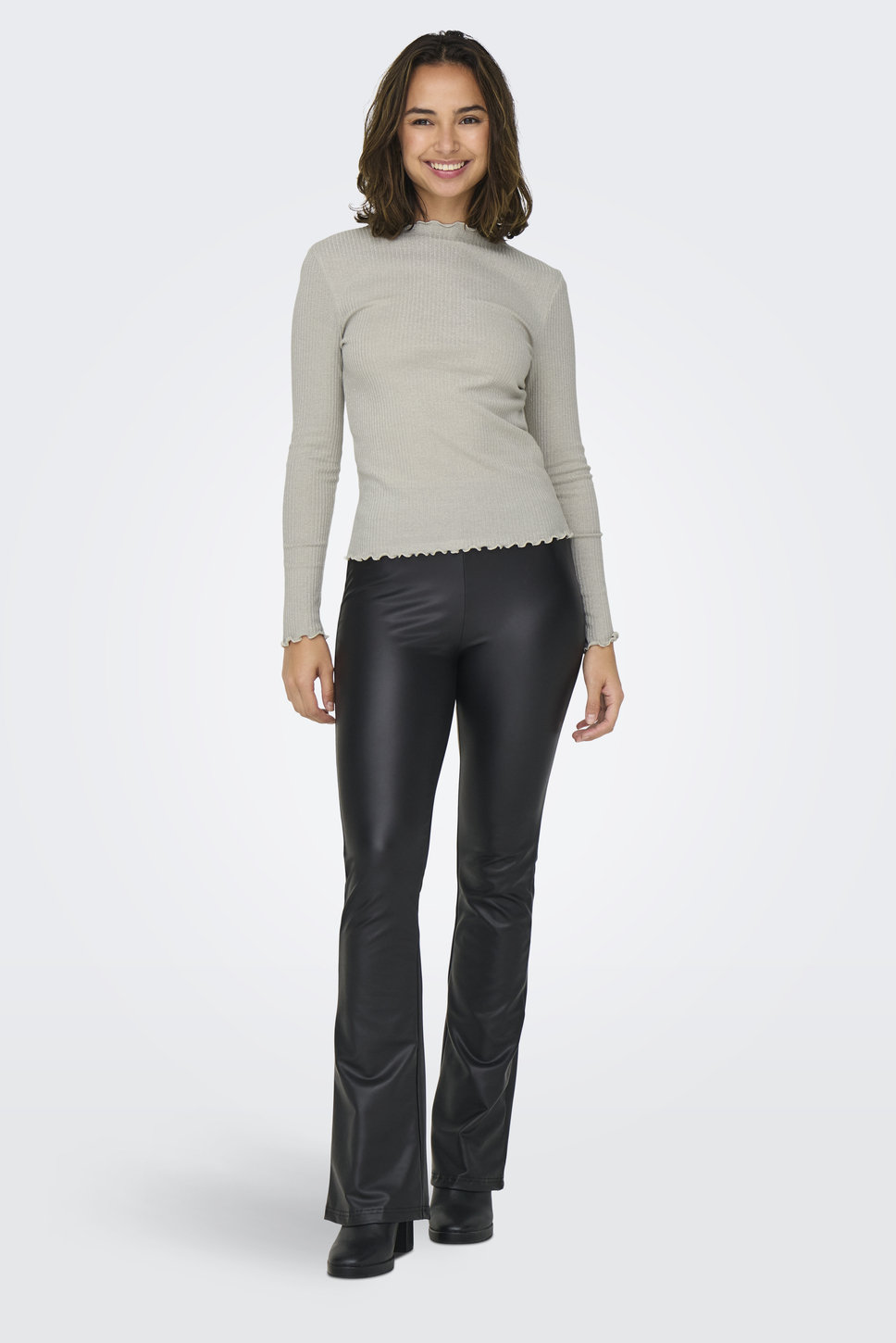 Dit glamoureuze knitwear T-shirt van Only is een must-have in jouw herfstvoorraad. Met een reguliere pasvorm en lange mouwen biedt het niet alleen comfort, maar ook een chique uitstraling door het subtiele glitterpatroon. De ronde hals en de zachte, rekbare stof maken het een geschikte keuze voor zowel alledaagse als speciale gelegenheden. Of je nu een koffieafspraak hebt of een gezellig avondje uit, dit T-shirt is een veelzijdige toevoeging aan je kledingkast. De heerlijk zachte gevoel van dit T-shirt wordt verder versterkt door de charmante ruches aan de hals en mouwboorden, die net dat beetje extra flair toevoegen aan je look. De normale lengte maakt het gemakkelijk te combineren met zowel jeans als een trendy rok. Dit duurzame ontwerp is niet alleen praktisch en stijlvol, maar ook een bewuste keuze voor de modebewuste vrouw. Voeg dit schitterende stuk toe aan je collectie en voel je zelfverzekerd in elke setting.