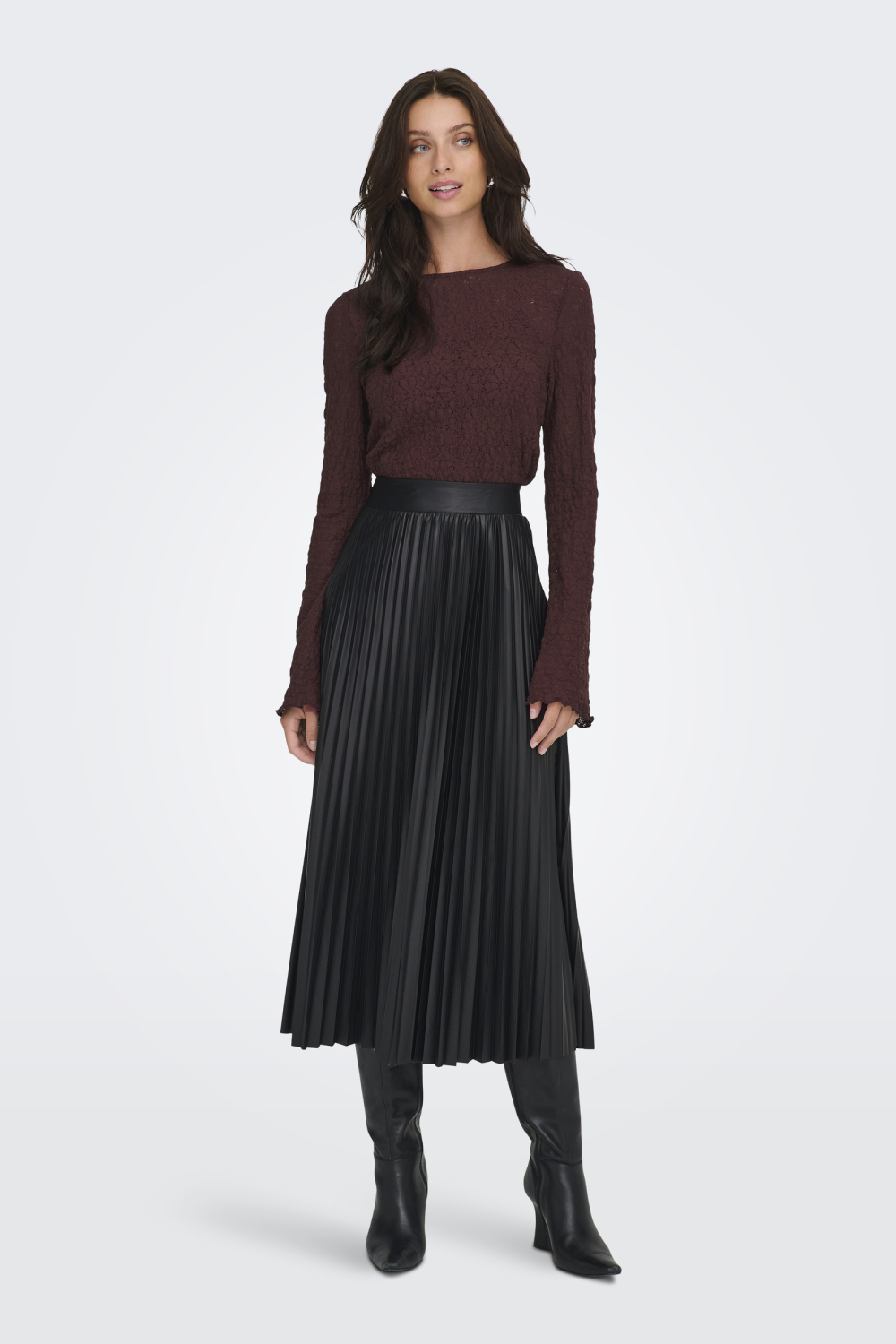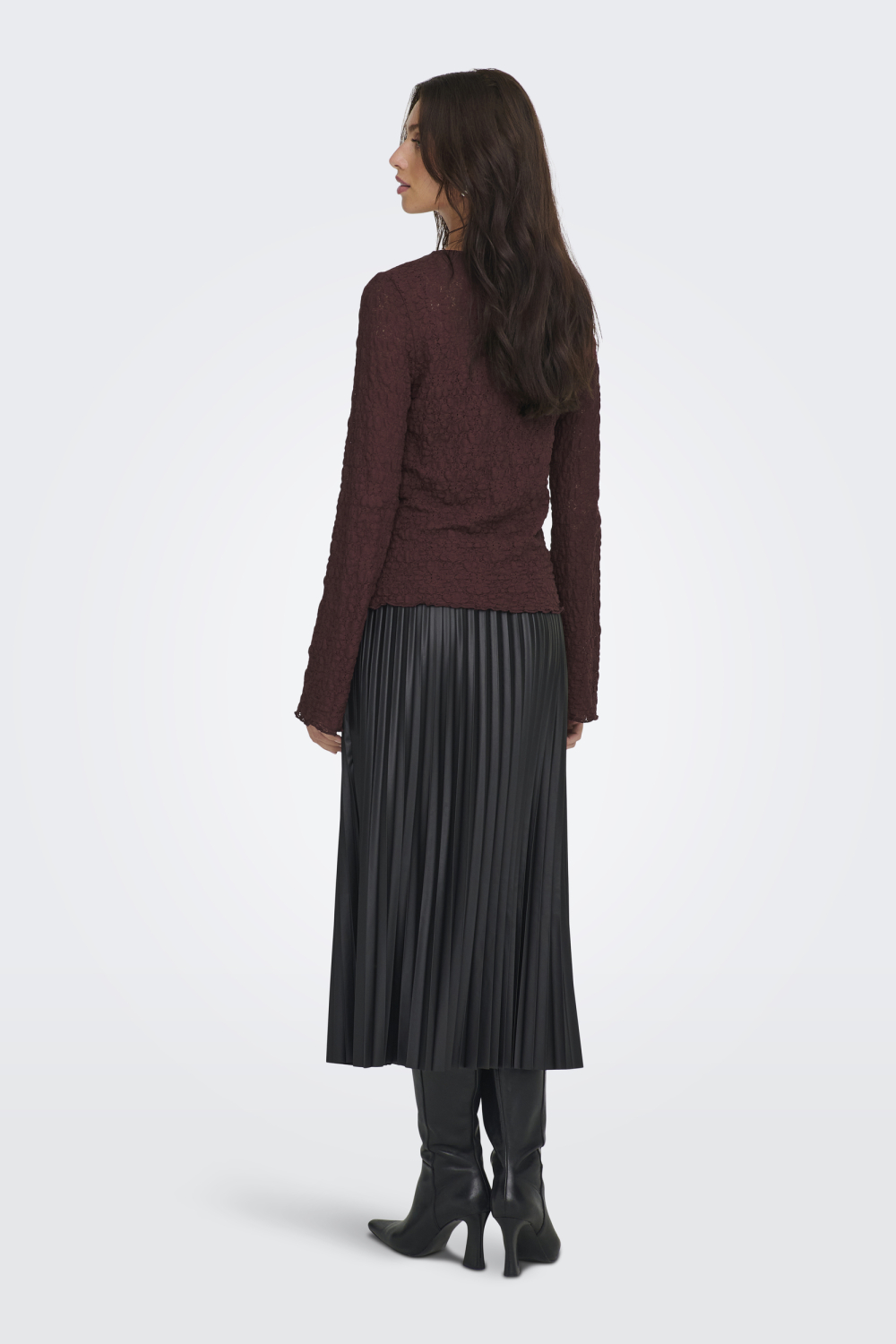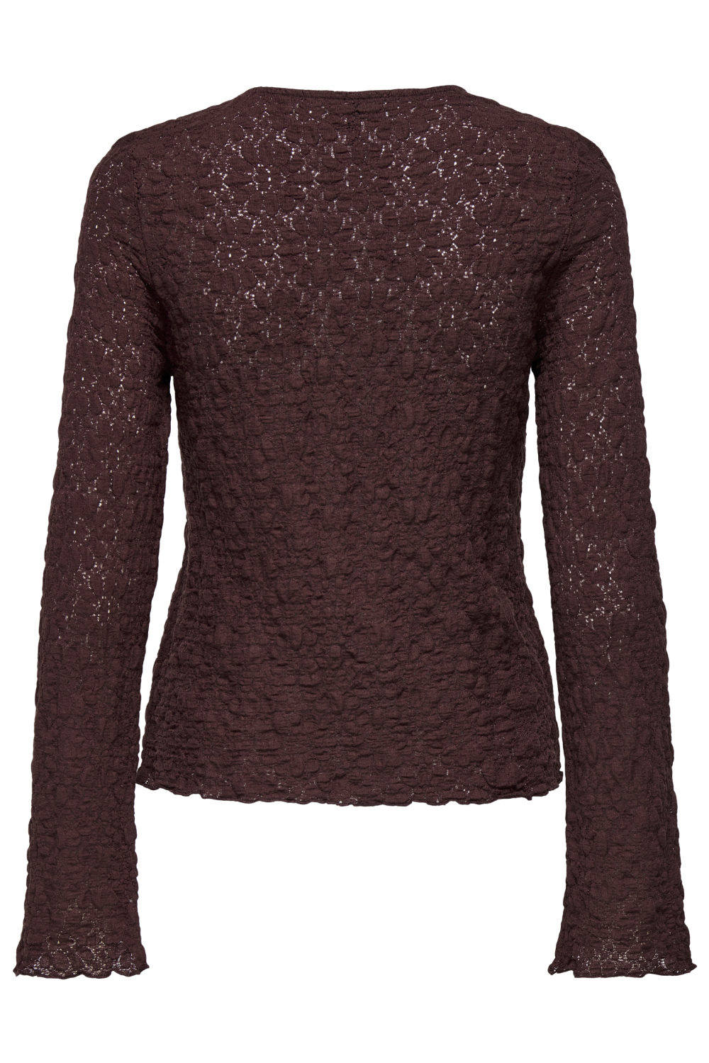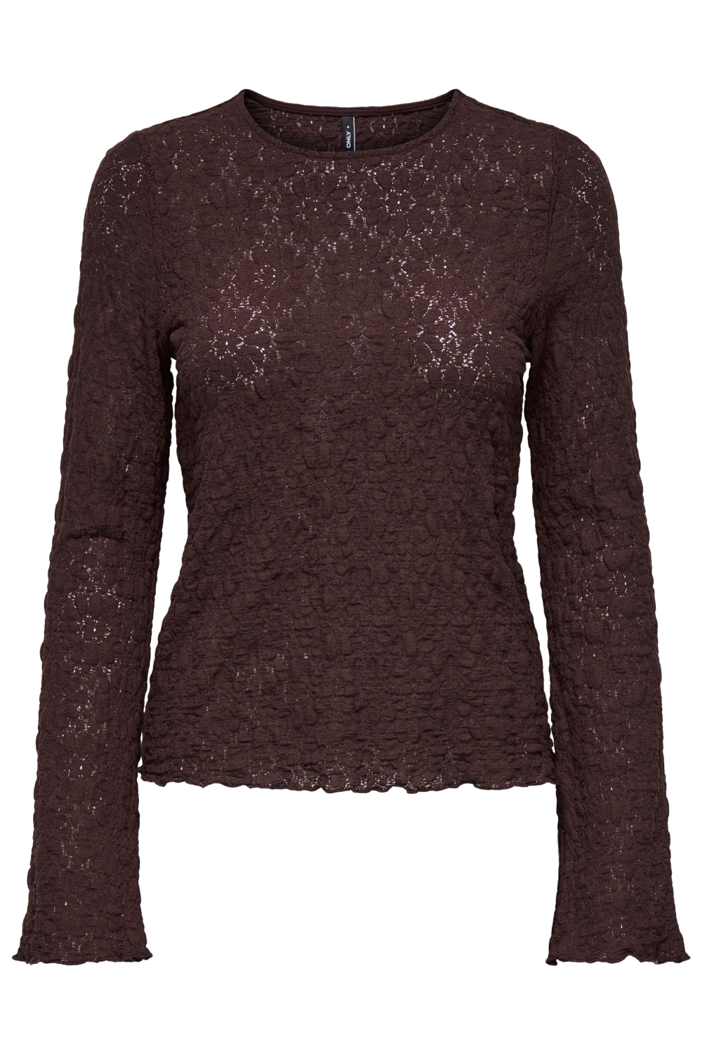 Dit casual kantpatroon T-shirt van Only in de kleur Decadent Chocolate voegt een elegante touch toe aan jouw wintergarderobe. De regular fit staat garant voor comfort, terwijl de fijne blend van 60% katoen, 35% polyamide en 5% elastaan zorgt voor een subtiele stretch. De ronde hals en lange mouwen maken het tot een veelzijdig kledingstuk dat je zowel thuis als onderweg stijlvol houdt.