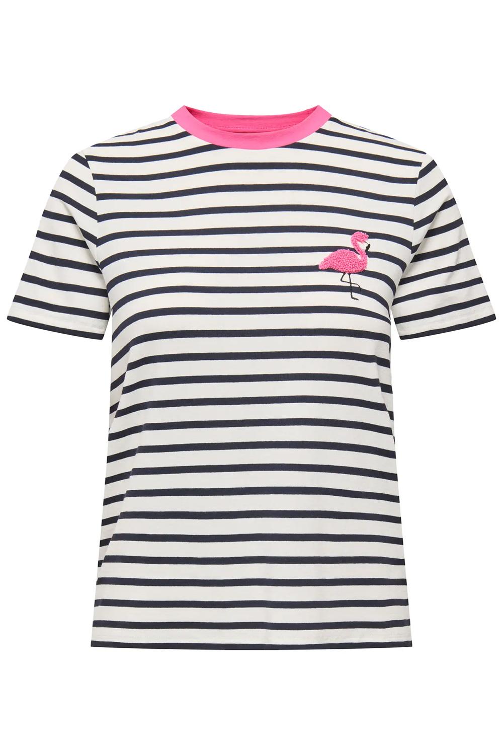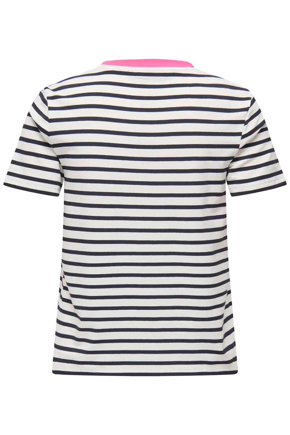 Dit casual streep T-shirt van Only is een ideale keuze voor elke dag. De combinatie van navy en witte strepen geeft het een frisse uitstraling, terwijl de felroze ronde hals en het speelse flamingo-detail op de borst zorgen voor een unieke touch. Het T-shirt heeft een regular fit pasvorm, zodat het comfortabel zit en gemakkelijk te combineren is met verschillende outfits. Het materiaal van 95% Viscose Lenzing Ecovero en 5% elastaan biedt een zachte en soepele textuur, perfect voor dagelijks gebruik. Met zijn korte mouwen is dit T-shirt geschikt voor de warmere maanden, maar ook perfect om onder een vest of jasje te dragen wanneer het kouder wordt. De normale lengte maakt het een veelzijdig stuk dat zowel goed past bij jeans voor een casual look als bij een rok voor een meer geklede outfit. Of je nu een dagje op kantoor doorbrengt of een ontspannen middag in de stad plant, dit streep T-shirt van Only is een duurzame keuze die aansluit bij verschillende activiteiten.