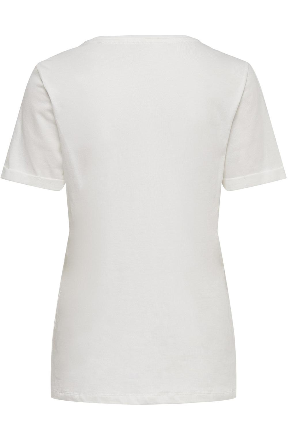 Dit casual T-shirt van Only is een veelzijdige keuze voor de lente. Met een regular fit en gemaakt van 100% organisch katoen voelt het zacht aan op de huid en biedt het ultiem comfort. De ronde hals en de normale lengte maken het een onmisbare basic in je garderobe. De subtiele glitters in de kleur CLOUD DANCER/ GOLD GLITT geven dit T-shirt een speelse en moderne twist, zonder te opvallend te zijn. Ideaal voor dagelijkse activiteiten of een gezellig samenzijn met vrienden.