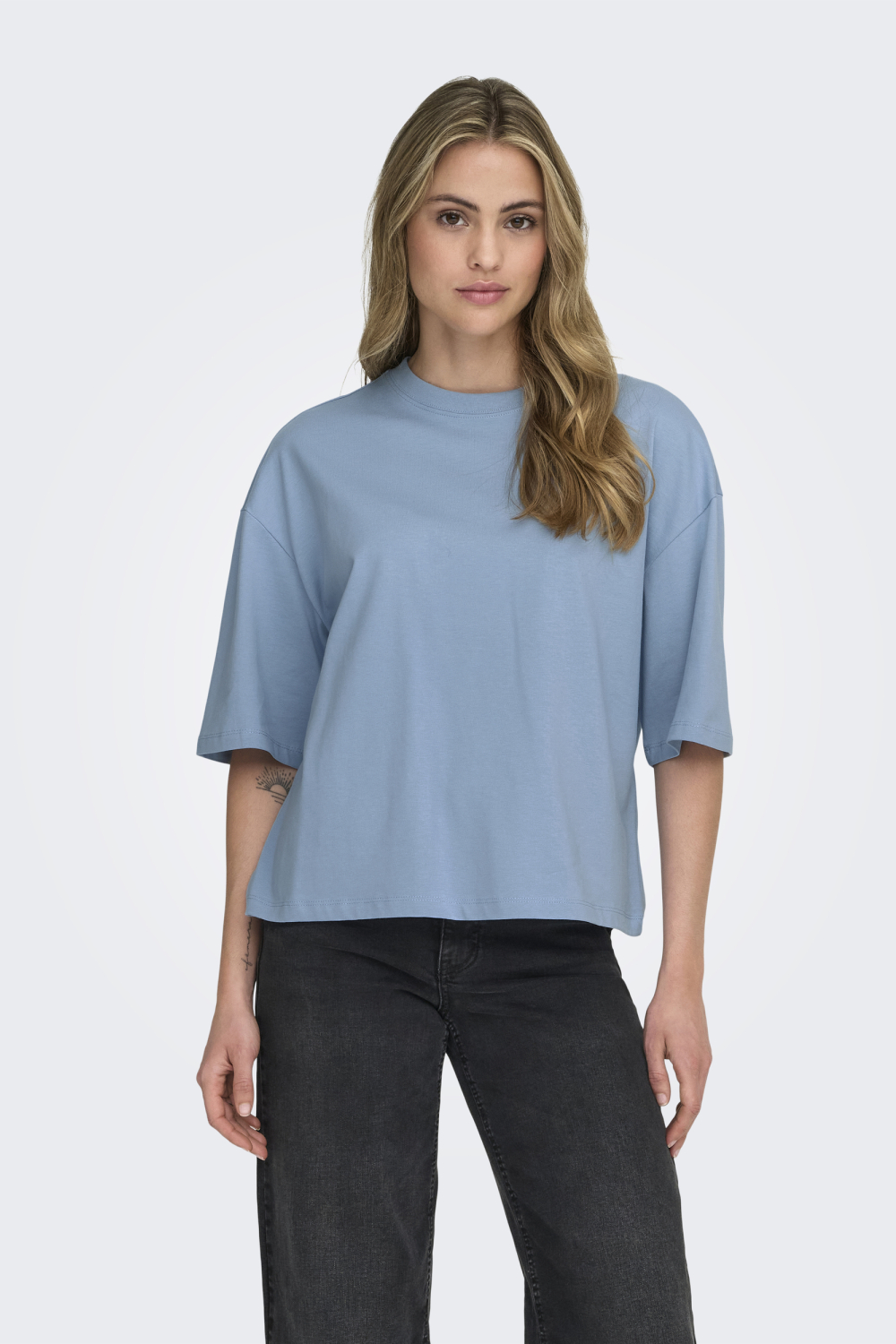 Dit casual T-shirt van Only is een comfortabele keuze voor de moderne dame. Gemaakt van 100% katoen, biedt het een zacht gevoel op de huid dat ideaal is voor dagelijks gebruik. Met een oversized pasvorm en een klassieke ronde hals straalt dit T-shirt een ontspannen maar stijlvolle uitstraling uit. De korte mouwen en de zachte chambray kleur maken het perfect voor een informele dag in de stad of een rustige middag thuis. Door de normale lengte valt het mooi over elke broek of rok. Dankzij het veelzijdige ontwerp kun je dit T-shirt makkelijk combineren met je favoriete jeans voor een casual outfit of met een rok voor een iets gekledere look. De eenvoudige snit zorgt ervoor dat het in vrijwel elke garderobe past en biedt talloze mogelijkheden om te mixen en matchen. Of je nu een dagje winkelen plant of een gezellige lunch met vrienden, dit T-shirt is een betrouwbare keuze die altijd van pas komt.
