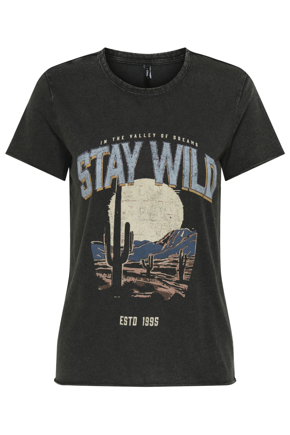 Dit casual zwarte Only T-shirt is een ideale toevoeging aan je dagelijkse garderobe. Het grafische ontwerp op de voorkant, met een wilde woestijnprint en de tekst "STAY WILD", geeft het shirt een stoere uitstraling. Gemaakt van 100% organisch katoen, biedt dit T-shirt niet alleen een zacht en comfortabel gevoel, maar het is ook een duurzame keuze. De regular fit zorgt voor een ontspannen pasvorm die altijd lekker zit. Met een ronde hals en korte mouwen is dit T-shirt perfect voor warmer weer, of het nu is voor een casual dagje uit of een relaxte bijeenkomst met vrienden.