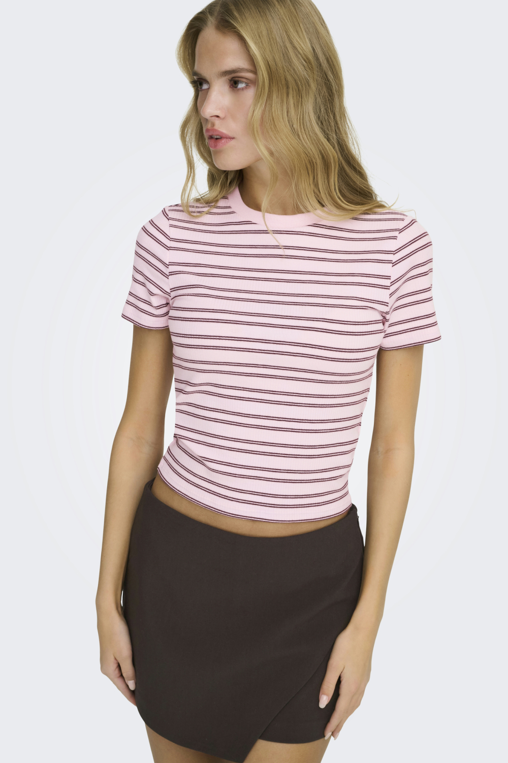 Dit casual T-shirt van Only, een dames T-shirt met een regular fit, past perfect bij een ontspannen en stijlvolle look. De roze strepen en ronde hals geven het shirt een trendy uitstraling, terwijl de korte mouw en normale lengte zorgen voor comfort in iedere situatie. Gemaakt van 60% polyester, 32% viscose en 8% elastaan, voelt het shirt zacht aan en biedt het voldoende rekbaarheid voor een fijne pasvorm. Of je nu een dagje uit gaat of een relaxte middag thuis plant, dit T-shirt is een veelzijdige keuze. Het gestreepte patroon maakt dit T-shirt makkelijk te combineren met een rok of een jeans voor een casual en moderne outfit. Door de basisstijl is het een populaire keuze voor elk seizoen. Dit T-shirt van Only laat zich eenvoudig mixen met verschillende kledingstukken, waardoor het een handige aanvulling is voor jouw garderobe. Perfect voor zowel dagelijkse bezigheden als informele bijeenkomsten, biedt dit T-shirt stijl zonder in te boeten op comfort.
