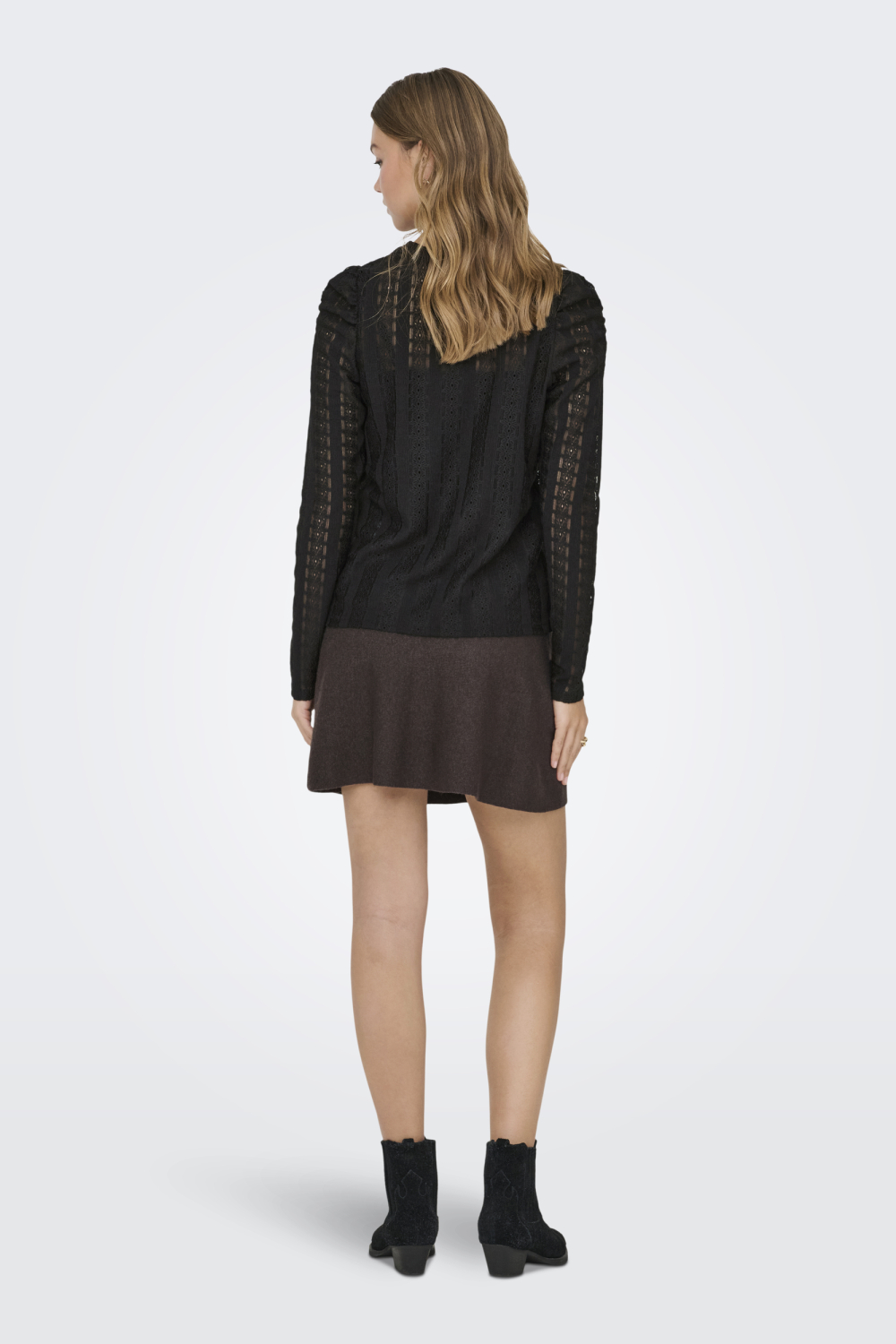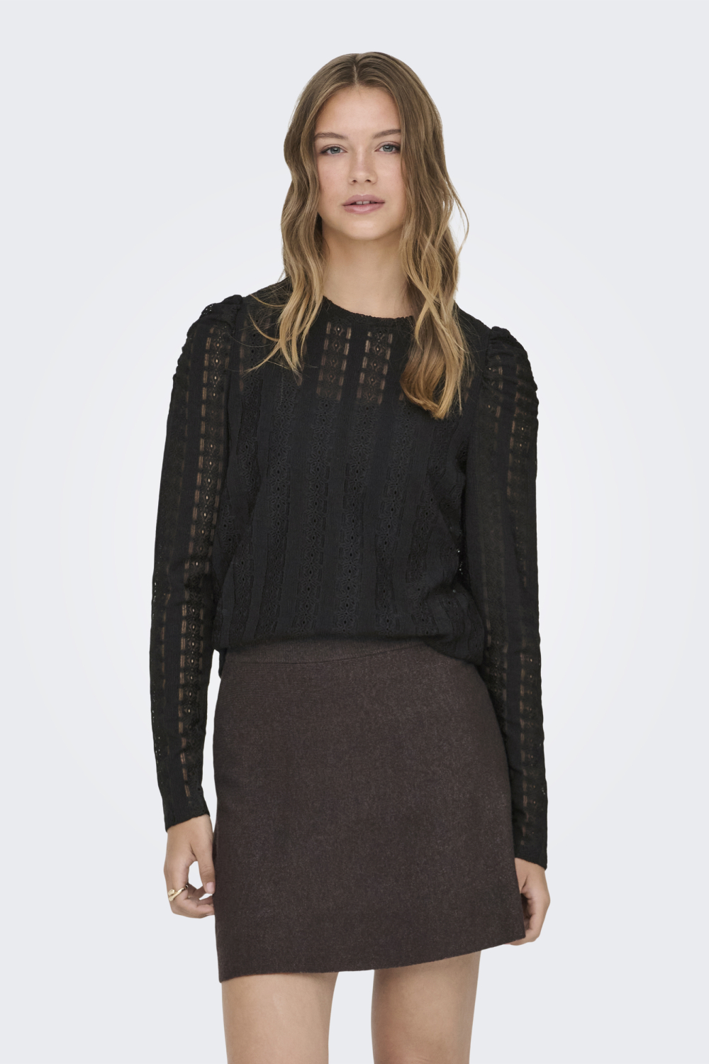 Perfect voor een avondje uit of een casual werkdag, is dit Only T-shirt zowel chic als praktisch. Het gedetailleerde kantwerk en de lichte ruches op de schouders voegen een elegante finesse toe, waardoor je moeiteloos een stijlvolle indruk maakt. Combineer het met een strakke jeans of een rok voor een perfecte look die geschikt is voor elke gelegenheid. Dit T-shirt is de ideale keuze om net dat beetje extra flair aan je outfit te geven.