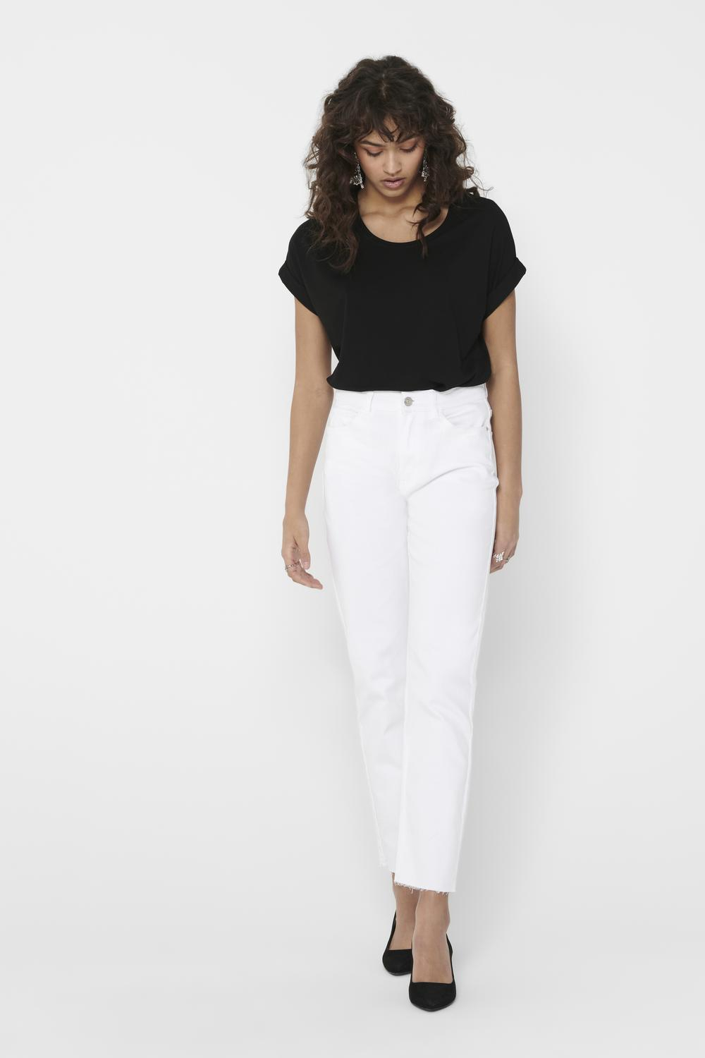 Dit comfortabele zwarte T-shirt van Only is een uitstekende toevoeging aan je alledaagse garderobe. Met een relaxte pasvorm, gemaakt van een zachte mix van 75% viscose, 20% polyester en 5% elastaan, biedt dit T-shirt ongekend draagcomfort. De ronde hals en korte mouwen geven het shirt een casual uitstraling, ideaal voor een informele dag uit of een relaxte thuisdag. De effen zwarte kleur zorgt voor een veelzijdige basis die je eenvoudig met andere items kunt combineren. Dankzij de relaxte fit voel je je de hele dag door vrij om te bewegen. Het normale model en de subtiele opgerolde mouwen geven een moderne twist aan dit klassieke ontwerp. Perfect om te combineren met een jeans voor een casual look, of met een nette pantalon voor een meer gepolijste outfit. Met de veelzijdigheid van dit T-shirt kun je moeiteloos schakelen tussen verschillende dagactiviteiten. Of je nu boodschappen doet of een lunchdate hebt gepland, met dit T-shirt ga je voor een tijdloze stijl.