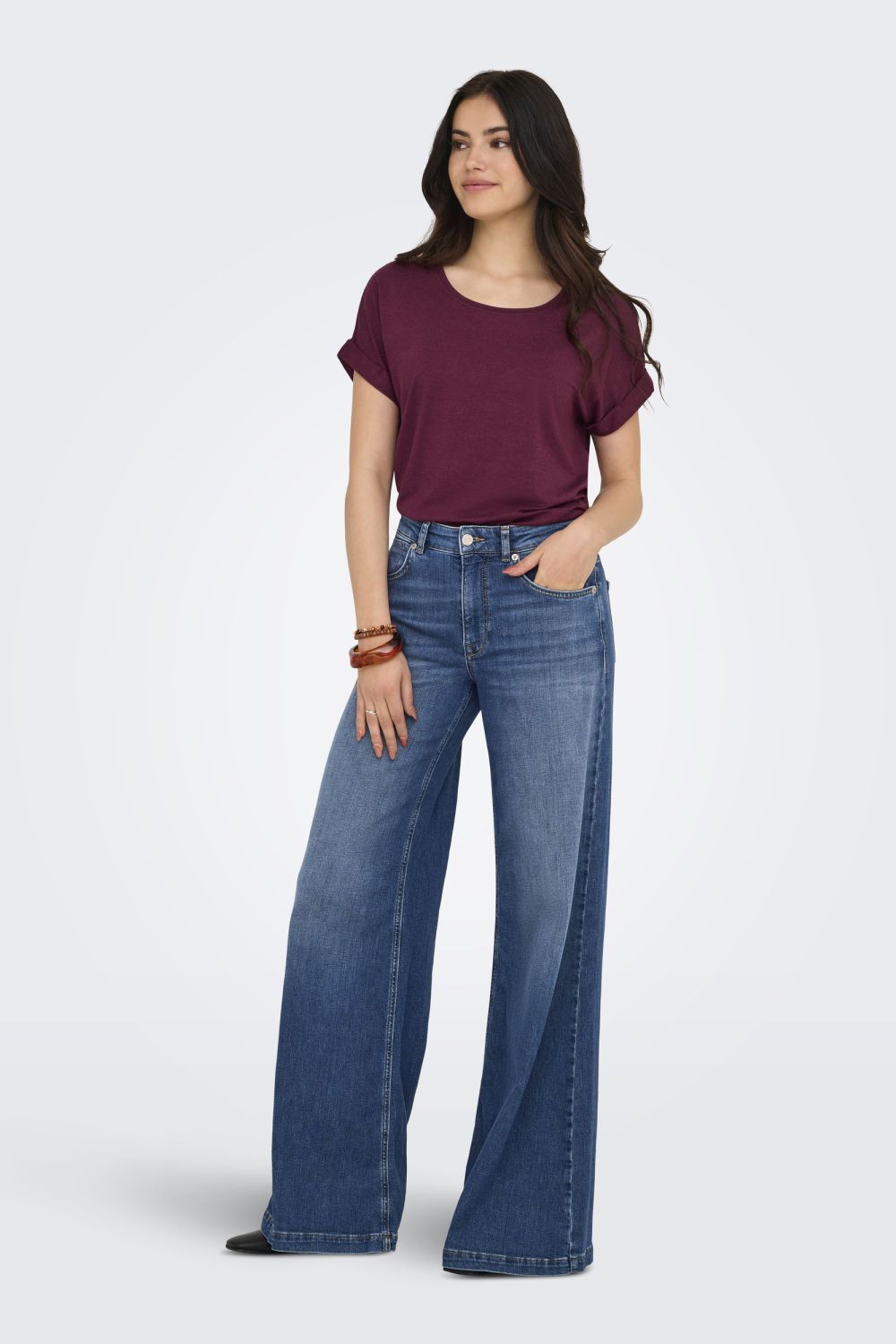 Met zijn diepe bordeauxrode tint is dit T-shirt gemakkelijk te combineren met verschillende outfits. Draag het met een jeans voor een casual look of combineer het met een rok voor een meer geklede stijl. Het basic ontwerp maakt het geschikt voor dagelijks gebruik, van een relaxte dag thuis tot een casual afspraak met vrienden. Dit T-shirt van Only is een praktische en stijlvolle toevoeging die je in verschillende situaties kunt dragen.