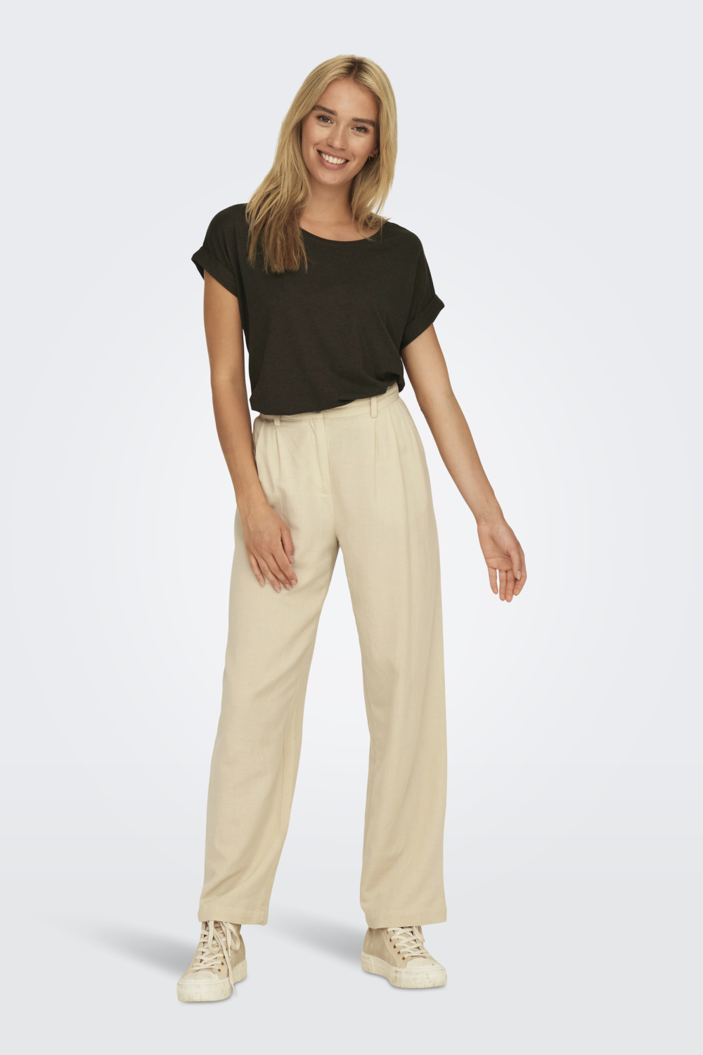 Dit gemêleerde T-shirt van Only in de kleur Demitasse is een ideale keuze voor je dagelijkse casual look. Door de combinatie van 75% viscose, 20% polyester, en 5% elastaan, voelt de stof zacht aan en biedt het een comfortabele stretch. De ronde hals en korte mouwen met lichte omslag geven een subtiele en toch modieuze twist aan dit regular fit model. Perfect voor informele gelegenheden, zoals een ontspannen middag in het park of een lunch met vrienden. Met zijn tijdloos ontwerp is dit T-shirt eenvoudig te combineren met zowel jeans als nette broeken, waardoor je eenvoudig kunt schakelen van een relaxte naar een iets formelere setting. De normale lengte zorgt ervoor dat het netjes in of over je broek kan worden gedragen, afhankelijk van de look die je wilt creëren. Of je nu op kantoor bent of een weekendje weg plant, dit shirt biedt je een veelzijdige stijlkeuze.
