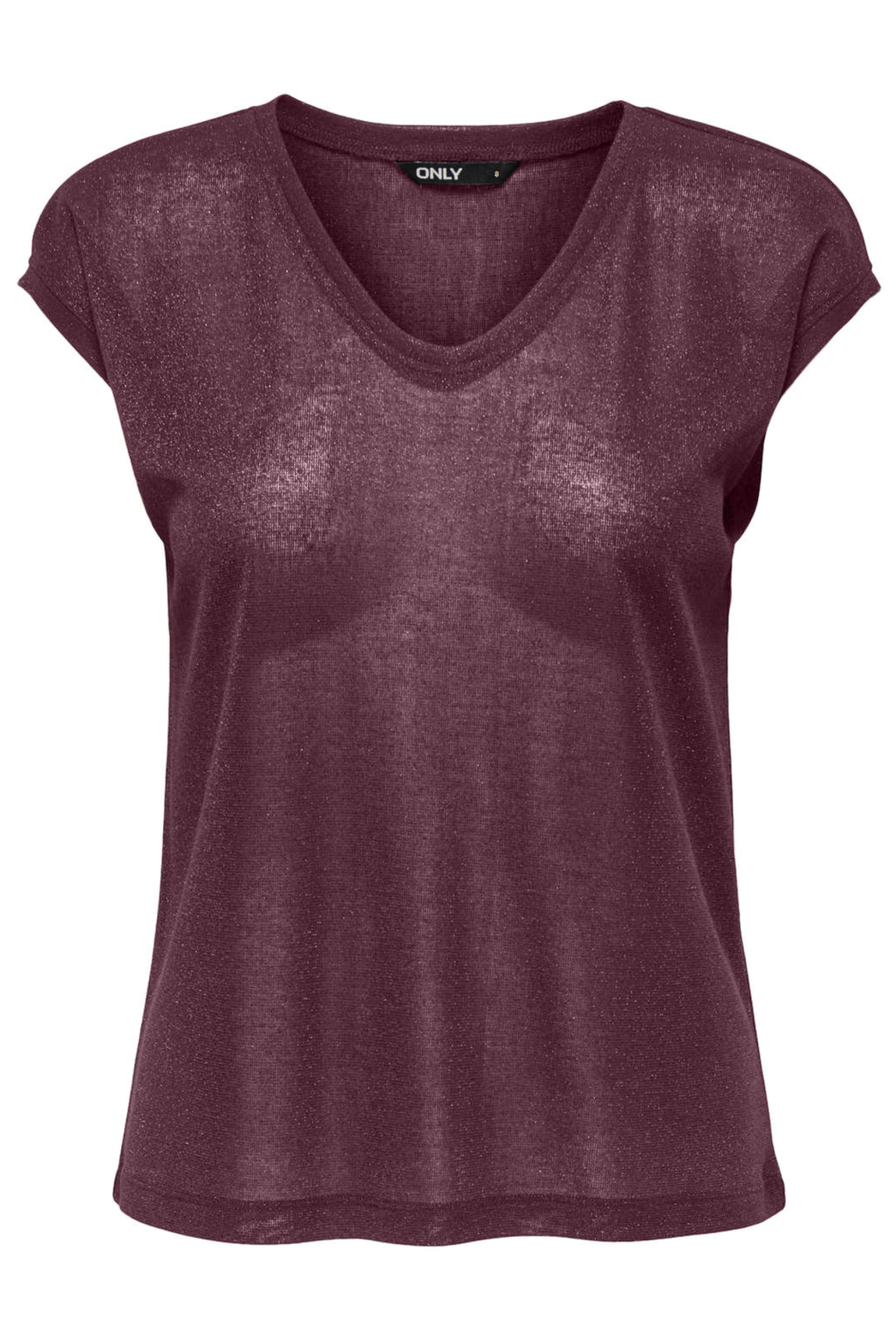 Met dit Only T-shirt voeg je een sprankelende touch toe aan je dagelijkse outfit. De bordeauxrode kleur en subtiele glitters maken dit shirt tot een veelzijdige keuze voor elke casual gelegenheid. De V-hals en kapmouwen geven het shirt een lichte en luchtige uitstraling, terwijl de regular fit zorgt voor een comfortabele pasvorm die bij iedereen goed staat. Gemaakt van een blend van polyester, viscose, en metaalgaren, biedt het niet alleen een zachte textuur, maar ook een luxe glans.