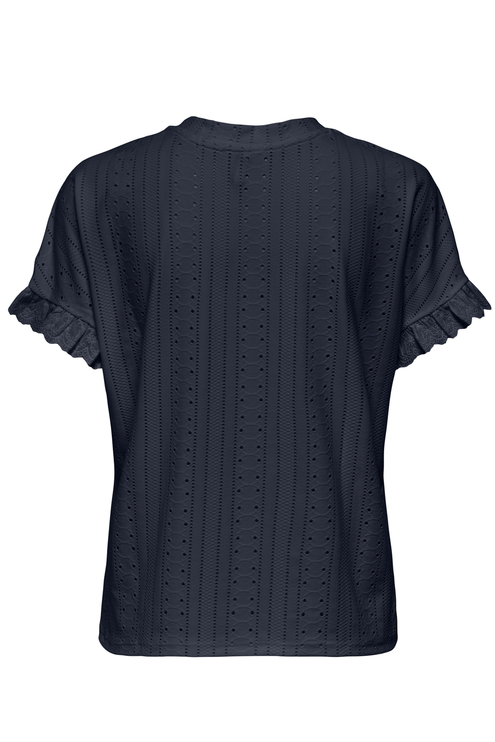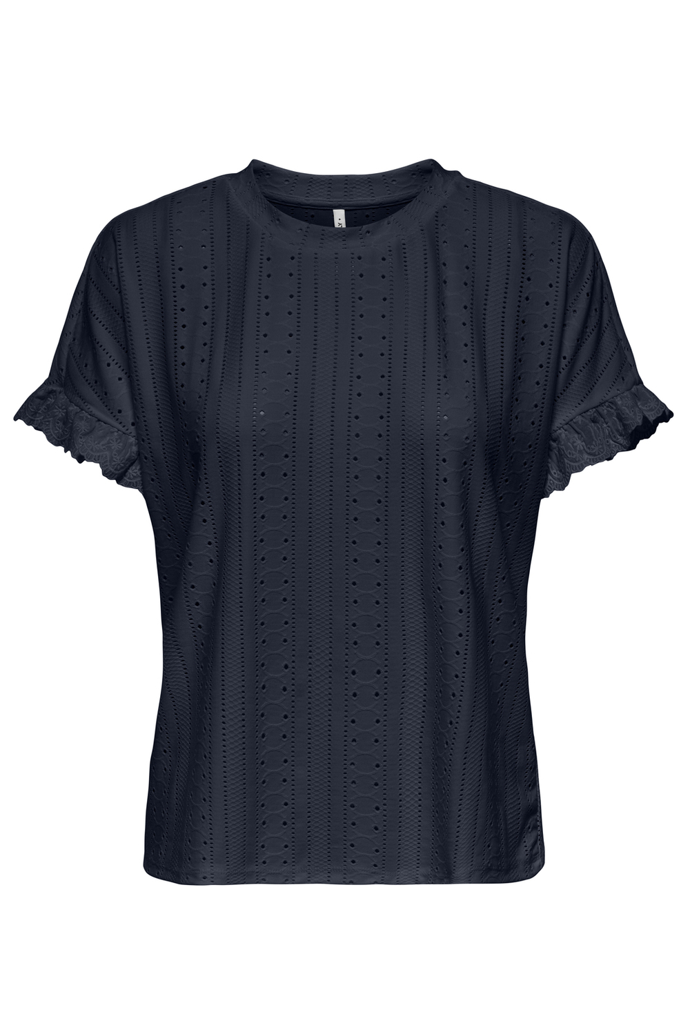 Dit Only T-shirt in navy blazer is een elegante toevoeging aan je dagelijkse kledingcollectie. Gemaakt van een comfortabele mix van 95% polyester en 5% elastan, biedt dit T-shirt een ademende en licht rekbare stof die perfect is voor zomerse dagen. De ronde hals en de ajourpatroon geven het T-shirt een stijlvolle uitstraling, terwijl de korte mouwen met subtiele ruches een uniek detail toevoegen. De regular fit pasvorm maakt het T-shirt prettig draagbaar voor verschillende lichaamstypes, en de normale lengte zorgt voor een relaxed gevoel.