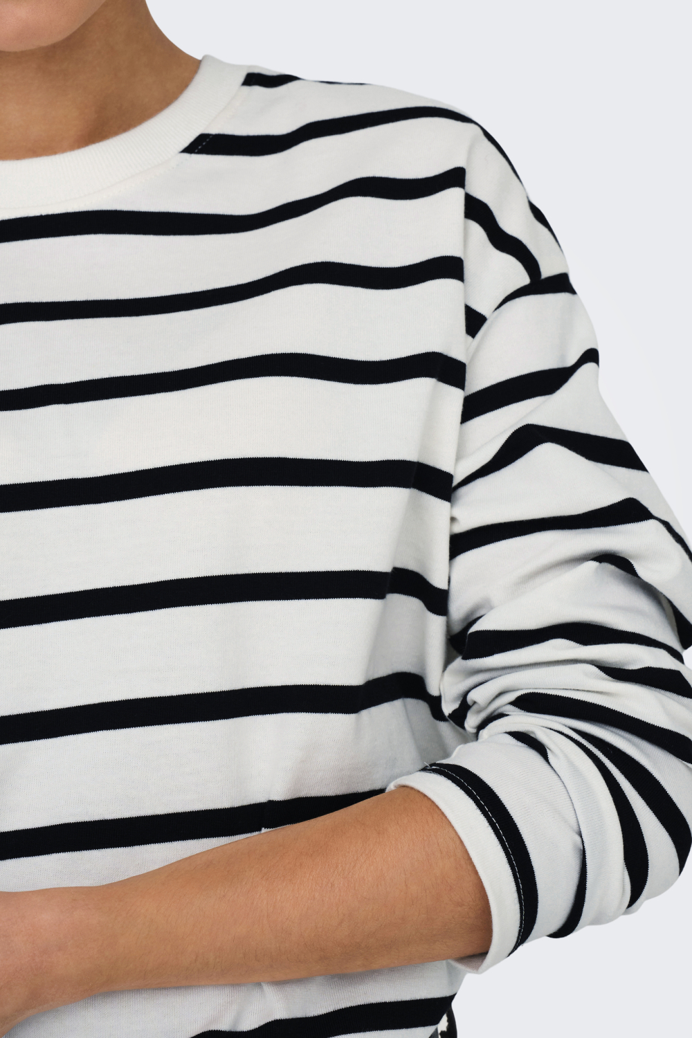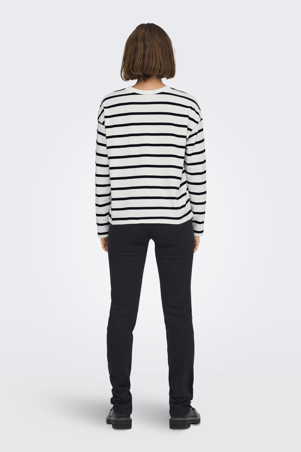 Dit gestreepte T-shirt van Only is een perfecte keuze voor de lente. Gemaakt van 100% katoen, biedt het een comfortabel gevoel en een ademende stof voor dagelijks gebruik. Het ontwerp met zwarte en witte strepen voegt een tijdloze uitstraling toe aan je outfit, met een ronde hals en regular fit die een ontspannen en moderne look garandeert. Dit T-shirt heeft een normale lengte en lange mouwen, waardoor het ideaal is voor zowel casual als semi-formele gelegenheden.
