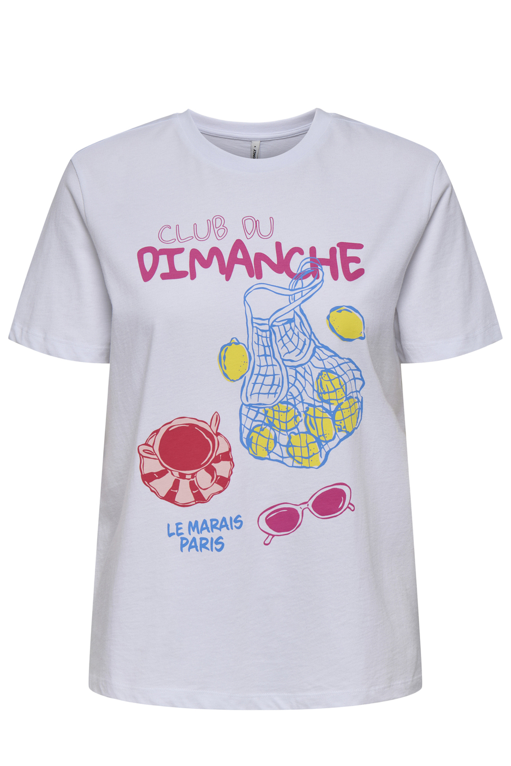 Dit stijlvolle T-shirt van Only, uitgevoerd in helder wit met een speelse grafische opdruk, is een veelzijdige aanvulling op jouw lente garderobe. Gemaakt van 100% katoen, biedt dit casual dames T-shirt ultiem comfort en ademend vermogen. De ronde hals en korte mouwen geven het een frisse uitstraling, perfect voor de warmere dagen. De print met levendige kleuren trekt de aandacht en voegt een vrolijke touch toe aan je dagelijkse look. Dit T-shirt heeft een regular fit, waardoor het gemakkelijk te combineren is met verschillende stijlen. Of je nu lekker naar het park gaat, een middagje door de stad wandelt of een ontspannen dag thuis doorbrengt, dit T-shirt van Only is een goede match. Draag het met je favoriete jeans en sneakers voor een casual look, of combineer het met een rok en sandalen voor een meer verfijnde outfit. Het normale model en de grafische elementen zorgen ervoor dat je met dit Shirt zowel stijlvol als comfortabel voor de dag komt.