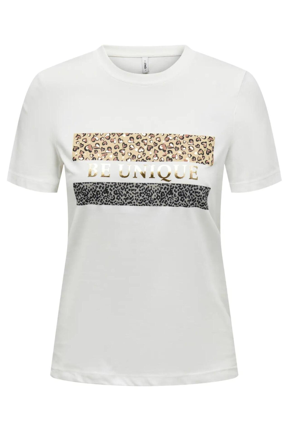 Dit casual T-shirt van Only is een veelzijdige toevoeging aan je garderobe. Uitgevoerd in een tijdloze, witte kleur genaamd "Cloud Dancer", heeft dit T-shirt een opvallend ontwerp met subtiele glitters en de tekst "Be Unique". Het gebruik van 100% katoen zorgt voor een comfortabele en ademende pasvorm, terwijl de regular fit en de ronde hals een relaxte, maar modieuze uitstraling geven. Ideaal voor een dagje uit of een informele gelegenheid, biedt dit T-shirt een perfecte mix van comfort en stijl.